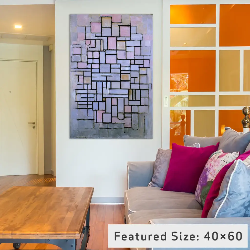 The artwork is crafted with 100-percent cotton artist-grade canvas, professionally hand-stretched and stapled over pine-wood bars in gallery wrap style - a method utilized by artists to present artwork in galleries. Fade-resistant archival inks guarantee perfect color reproduction that remains vibrant for decades even when exposed to strong light. Add brilliance in color and exceptional detail to your space with the contemporary and uncompromising style of iCanvas. Orientation: Vertical Shape: Rectangle Artist: Piet MondrianSize: Multiple sizes availableProduct Type: Gallery wrapped canvas artNew: Ready to be displayed right out of the box, including free hanging accessories and instructions for a quick and easy hanging process that achieves the best positioning results.Quality Wood Bars: Shrink-resistant wooden-bar frame with tensioning wedges that allow for tightening of the canvas from the reverse side.Dependent and Fast: Produced by the largest US canvas art supplier.