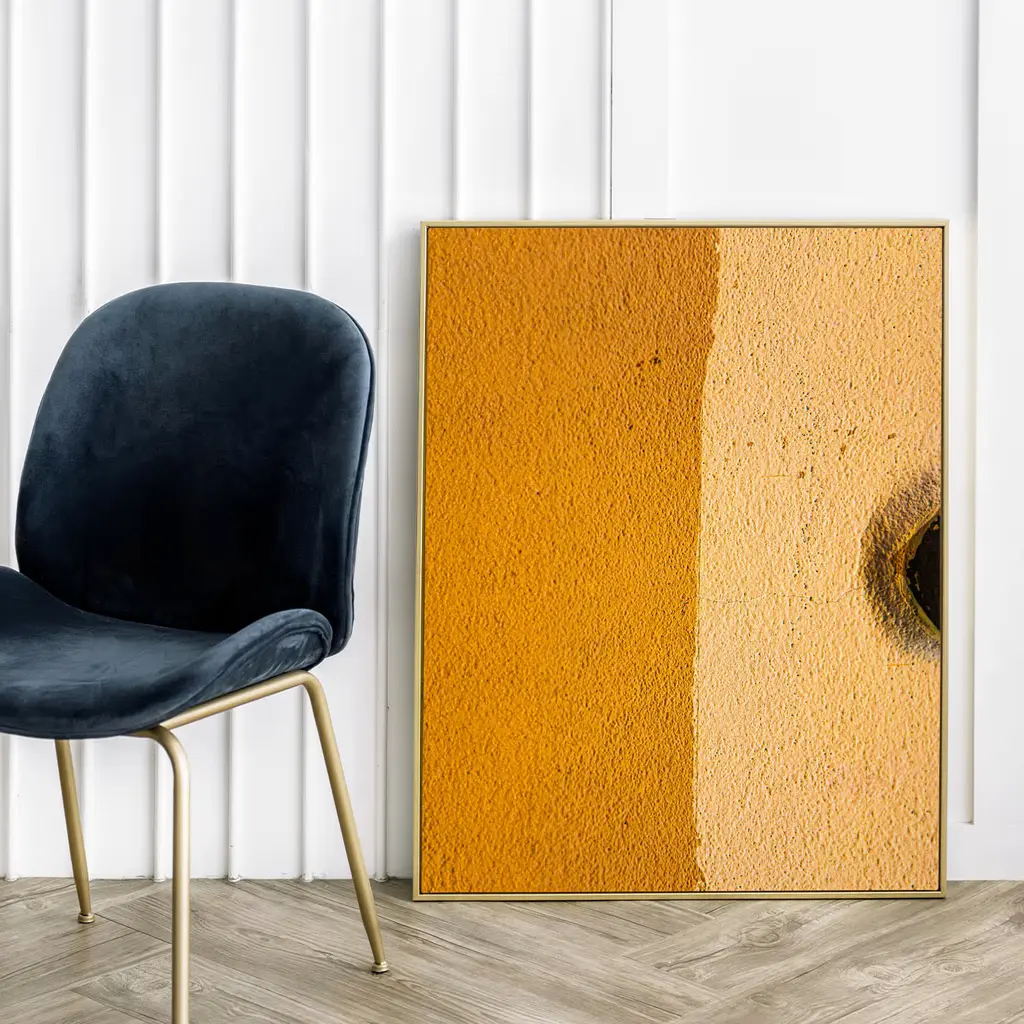 Distinguished by its artistic finesse, this captivating artwork is printed on matte Fine Art paper, elegantly framed by a crisp 2cm white border. A testament to minimalism, its clean lines dance with the interplay of two warm, vibrant hues, evoking a mesmerizing duality. An intriguing detail—a partial framing of a black hole—adds depth to the composition, inviting the viewer to ponder its meaning. It comes without a frame and other formats can be explored with the Concierge.