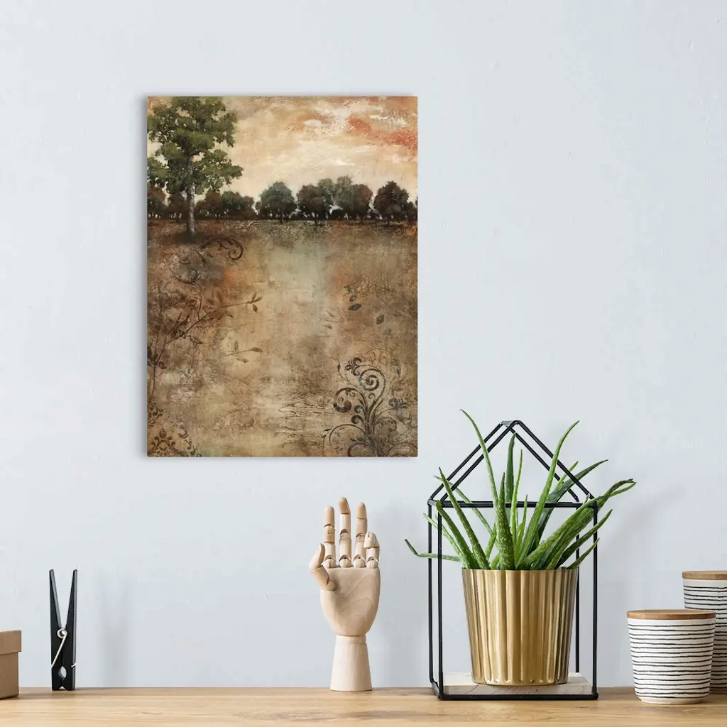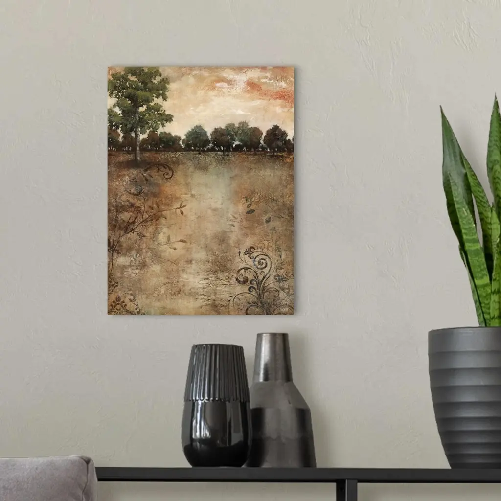Contemporary painting of an idyllic countryside landscape.