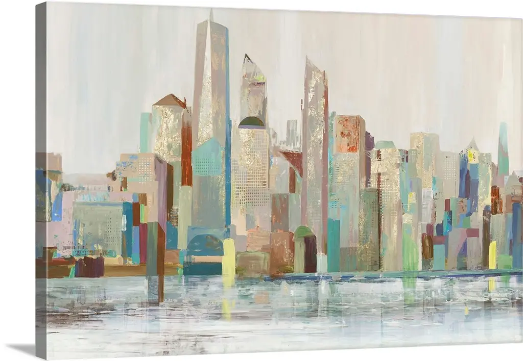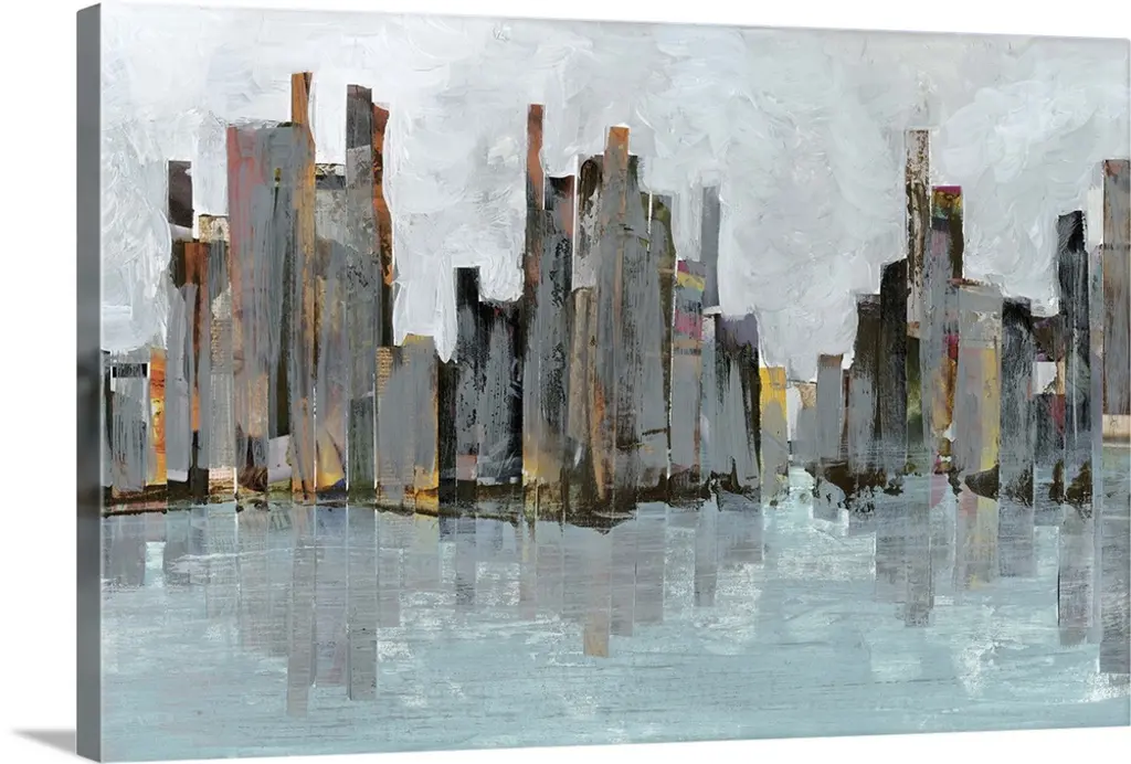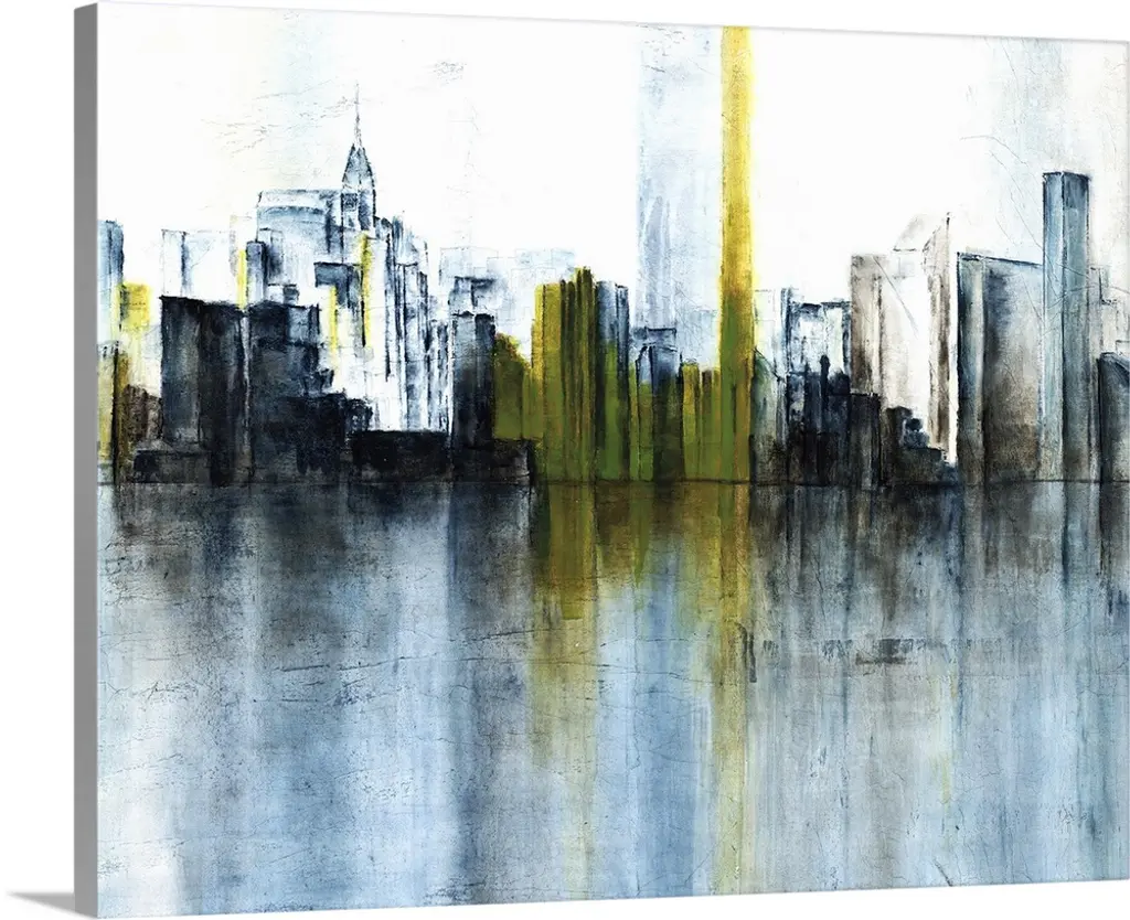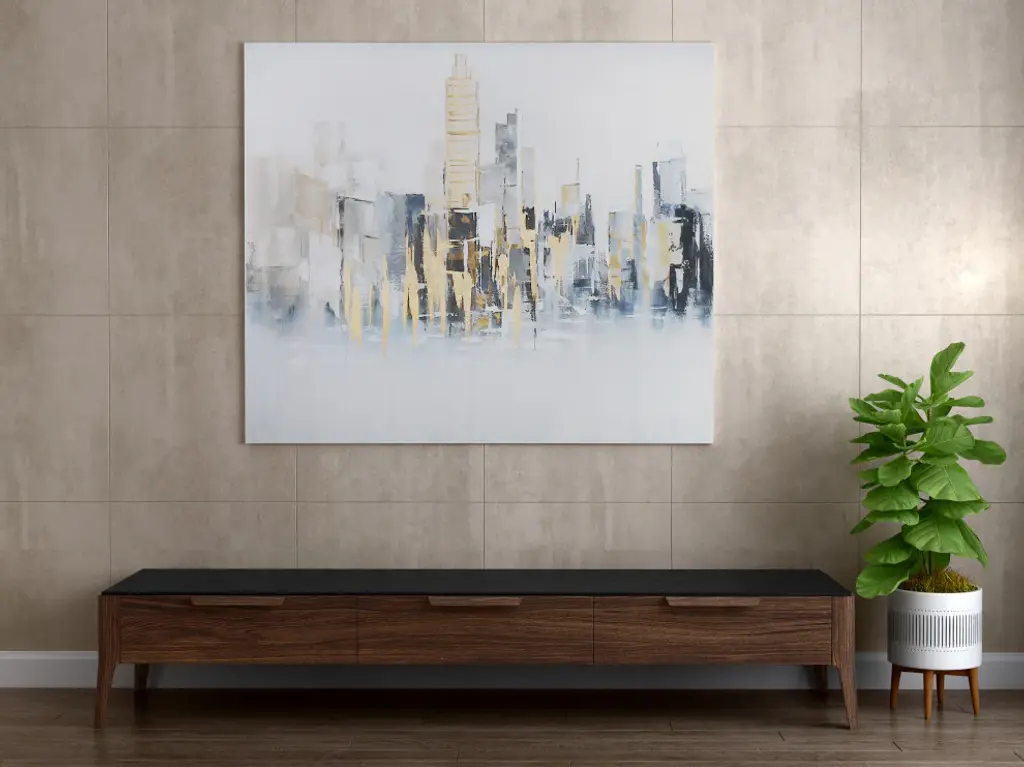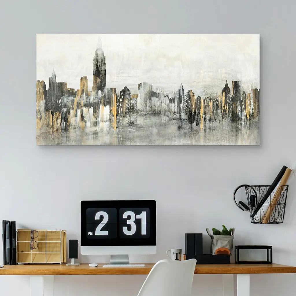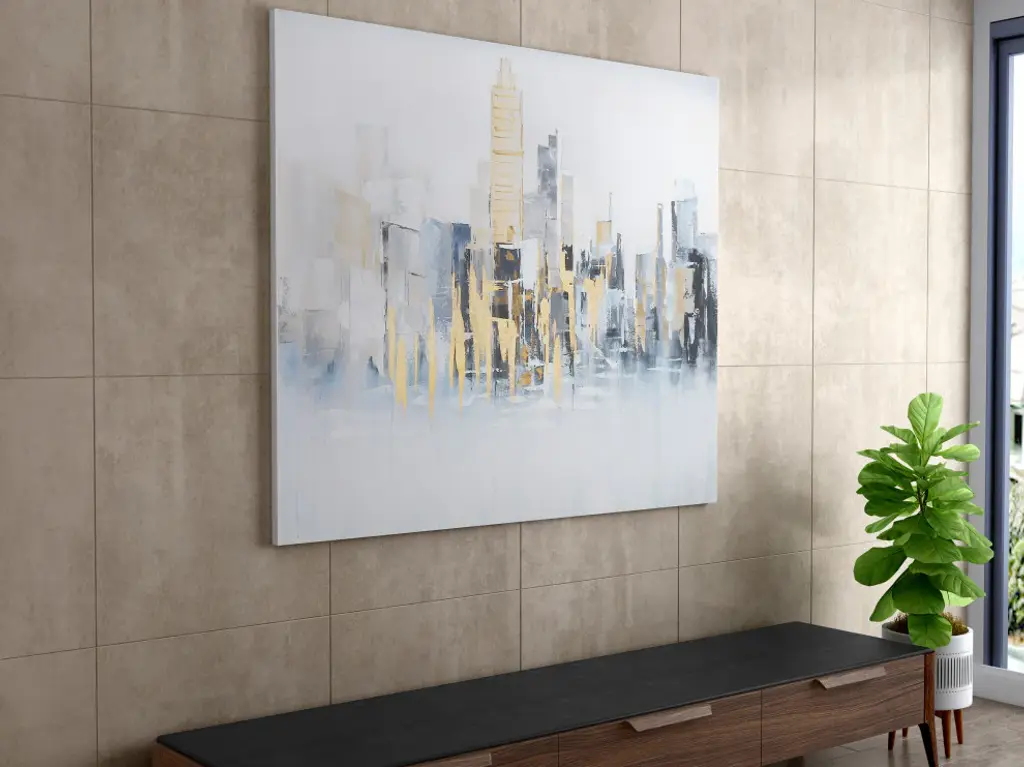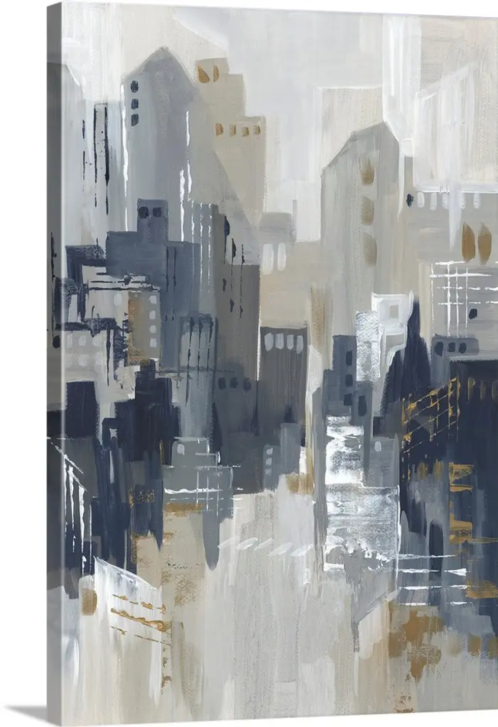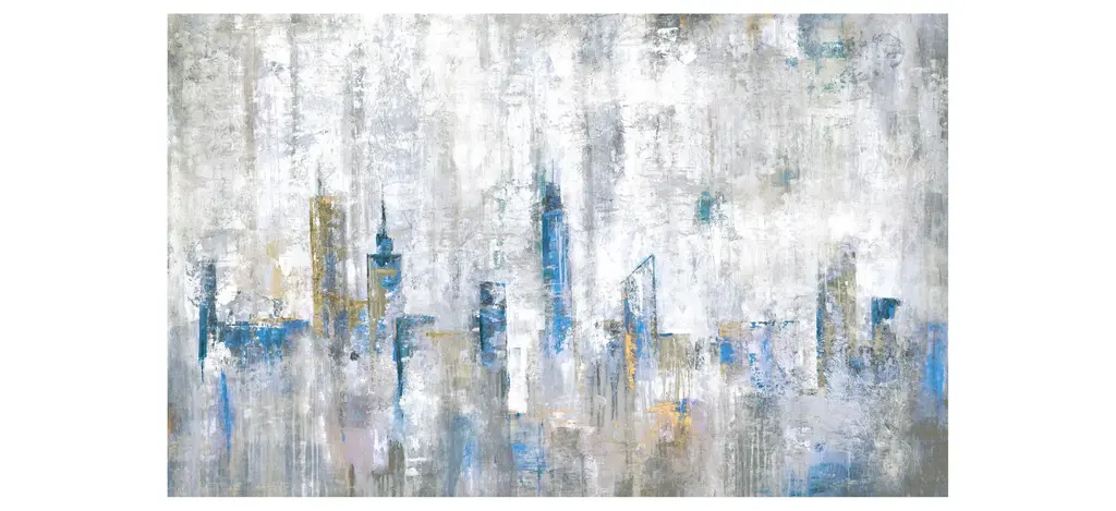 You''ll never feel far from the city with this contemporary skyline abstract in a cool blue and grey colour pallet which is perfectly accented with silver and gold leaf.