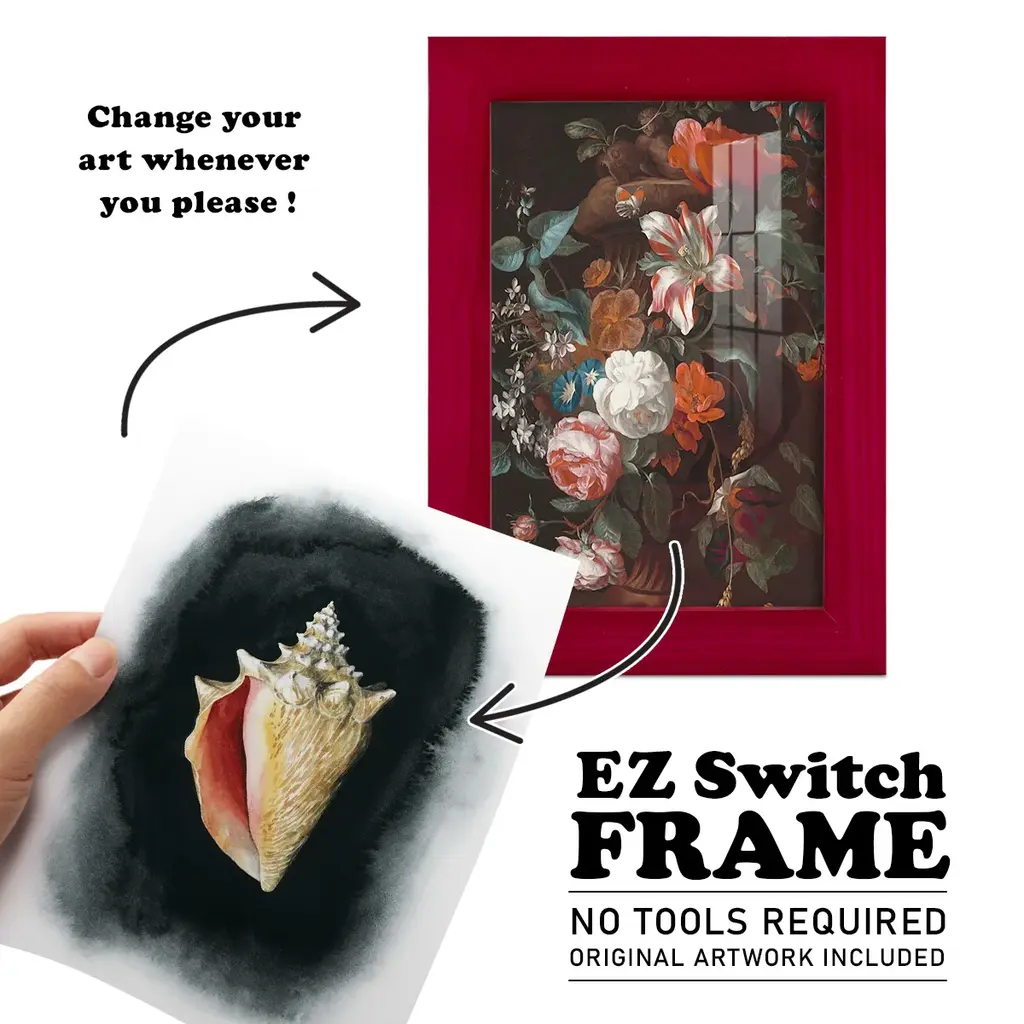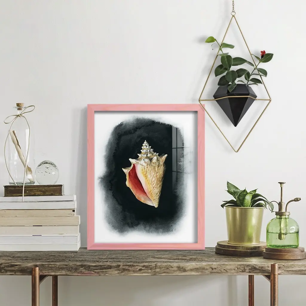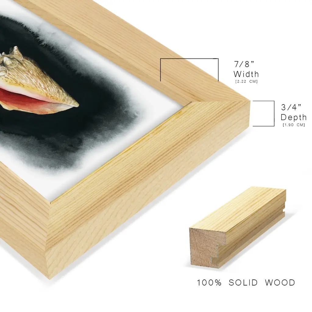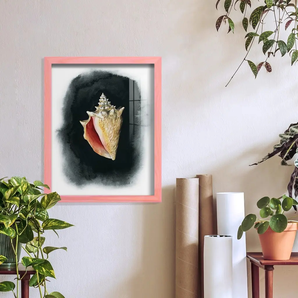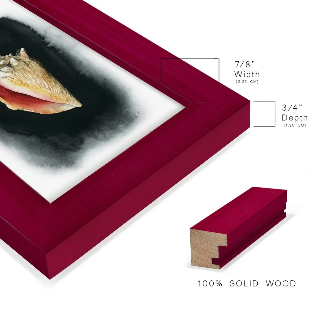 Conch on Black I -EZ SWITCH Framed Print w/glass-Cherry Red A delightful, framed print. Featuring a solid wood frame with real wood glass. This premium print is giclee quality. In addition, every frame features a removable back and table top stand. This allows you to change your art in the future or to just stand the art on a table for a new look. We are sure you'll enjoy our new series of EZ SWITCH Framed Art. Solid Wood Frame Real Glass Removable / Replaceable Art Built in Tabletop Stand Sizes range from 4x6 up to 12x15 - buy just one or pair them up as sets as you see fit.