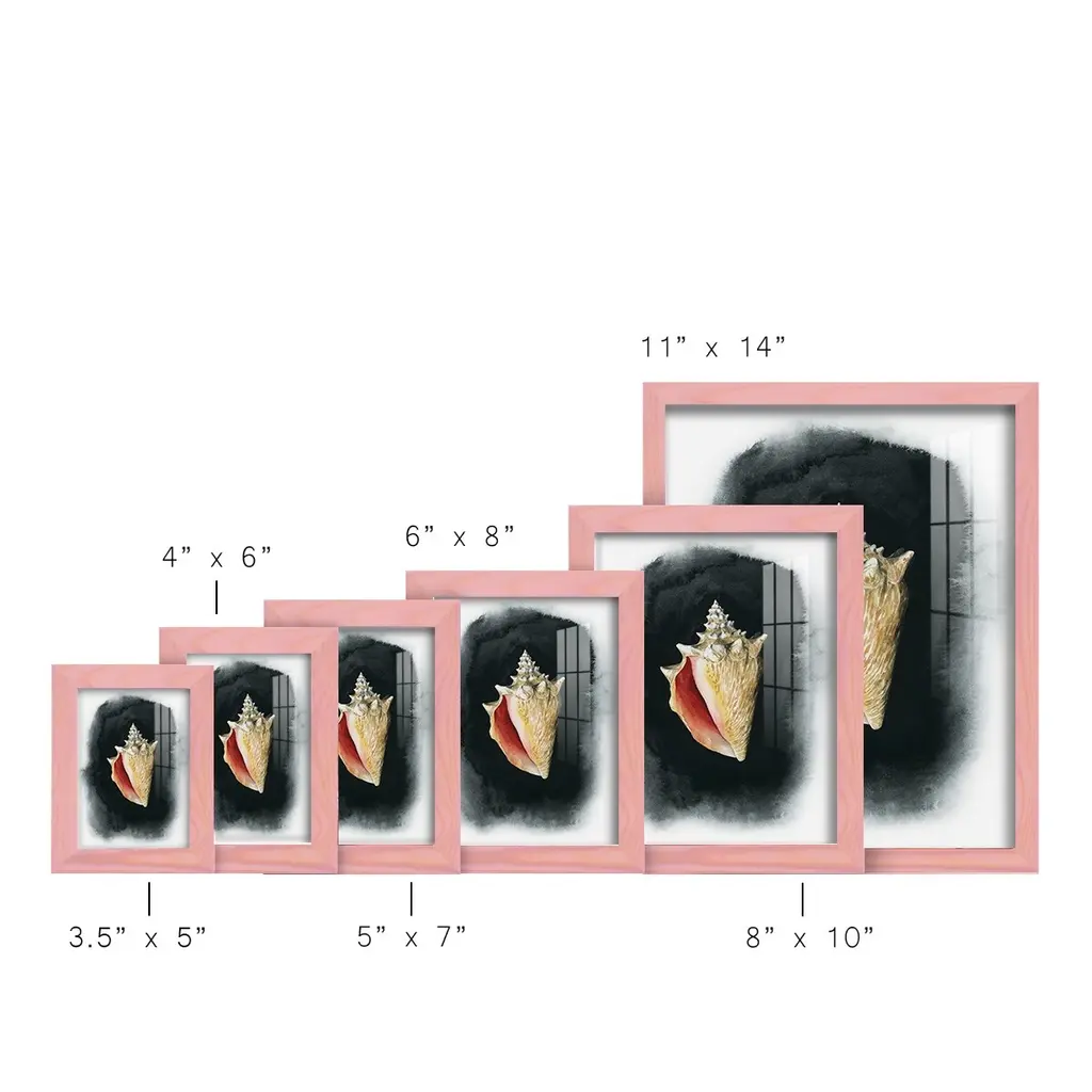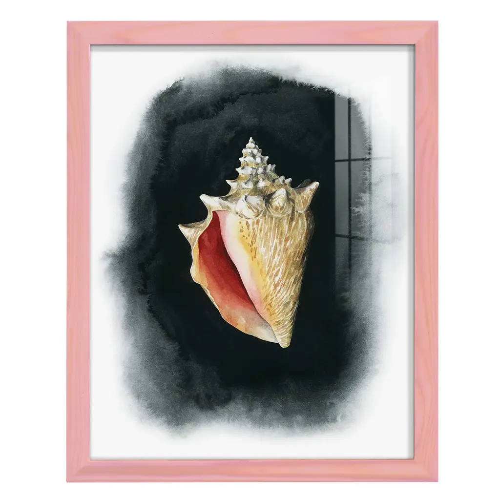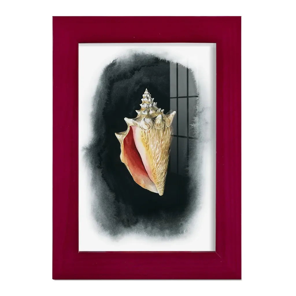 Conch on Black I -EZ SWITCH Framed Print w/glass-Cherry Red A delightful, framed print. Featuring a solid wood frame with real wood glass. This premium print is giclee quality. In addition, every frame features a removable back and table top stand. This allows you to change your art in the future or to just stand the art on a table for a new look. We are sure you'll enjoy our new series of EZ SWITCH Framed Art. Solid Wood Frame Real Glass Removable / Replaceable Art Built in Tabletop Stand Sizes range from 4x6 up to 12x15 - buy just one or pair them up as sets as you see fit.