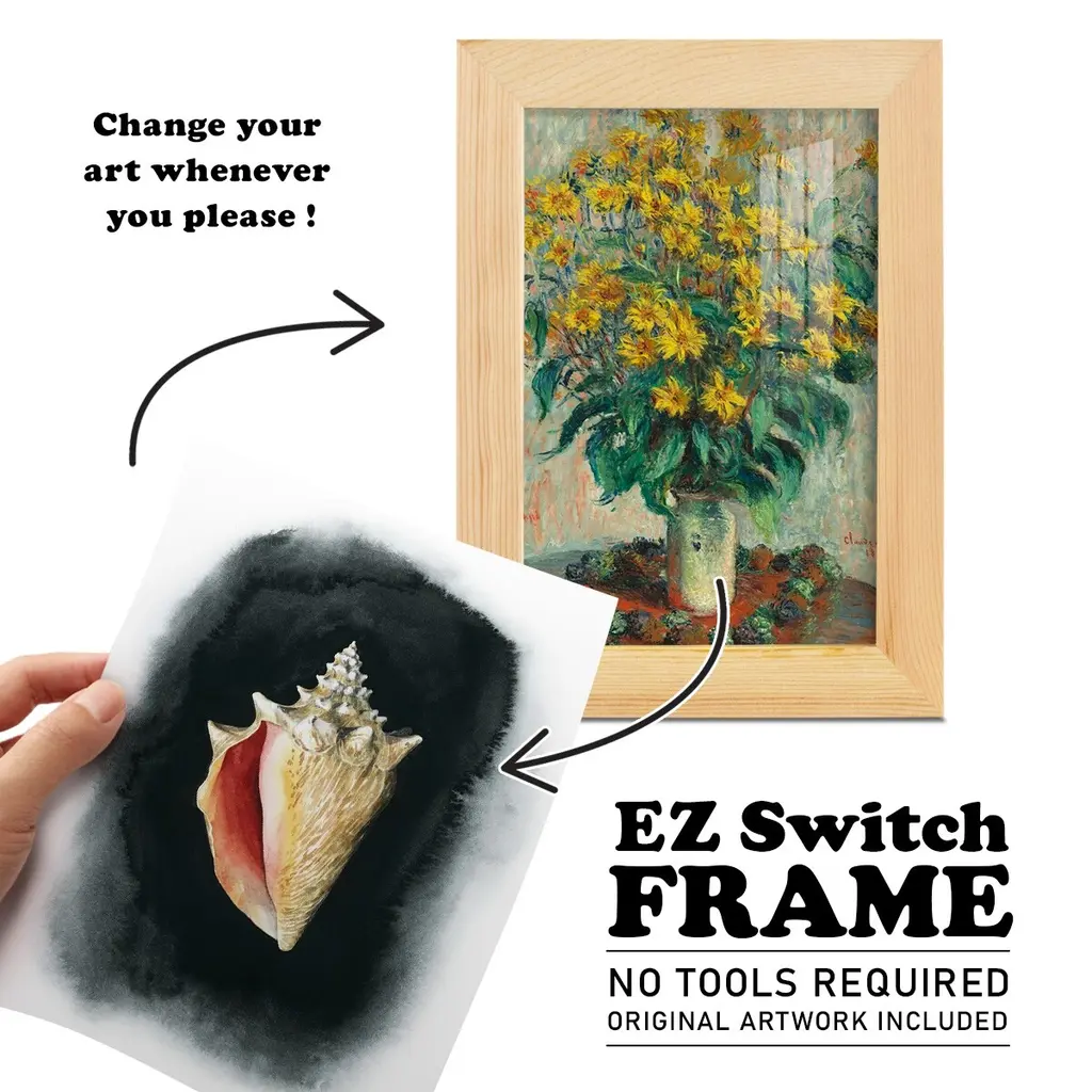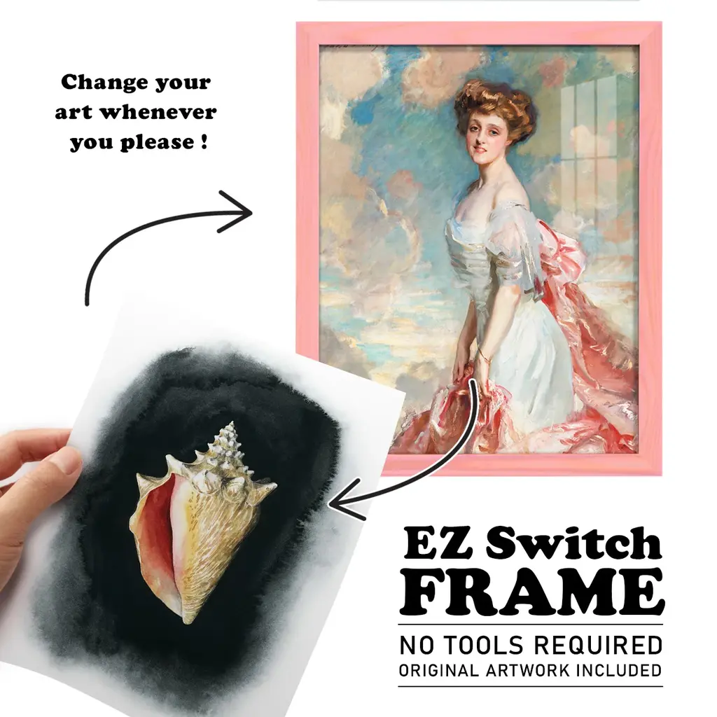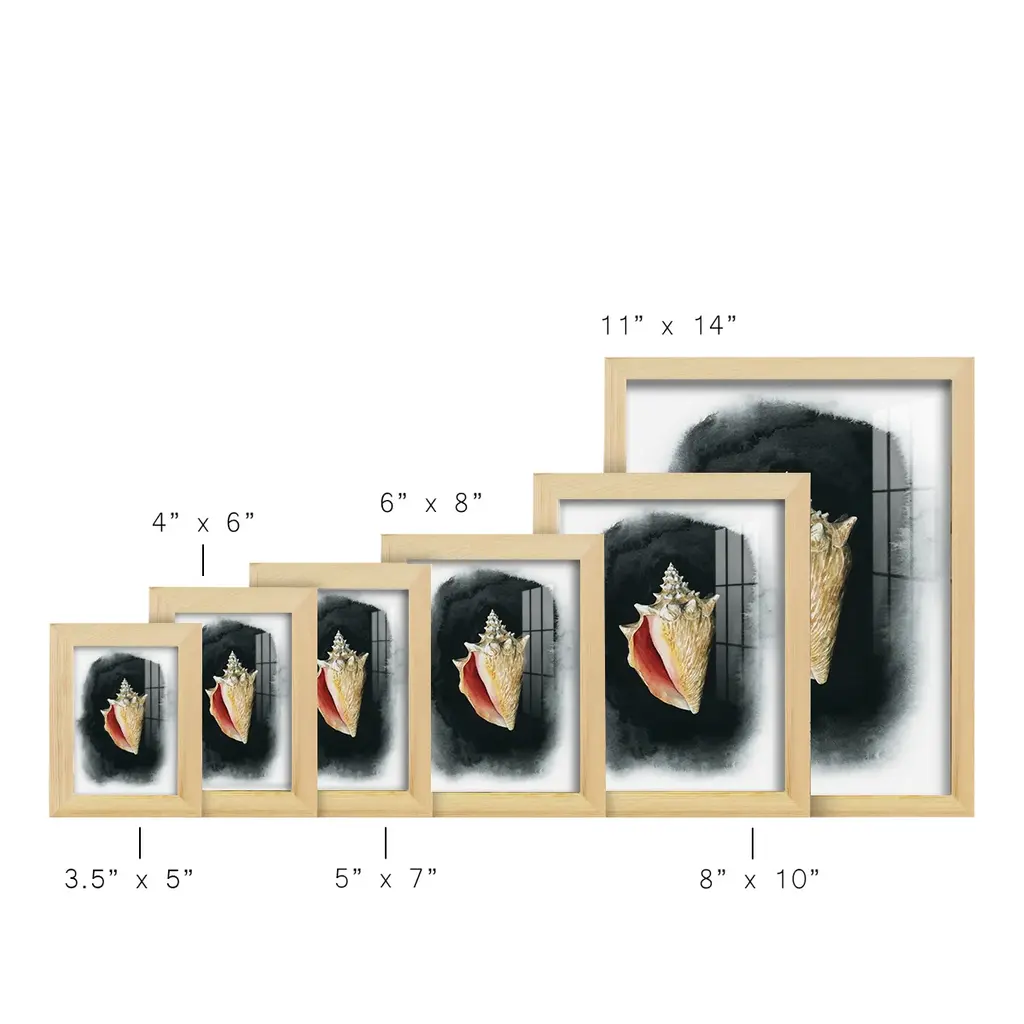 Conch on Black I -EZ SWITCH Framed Print w/glass-Cherry Red A delightful, framed print. Featuring a solid wood frame with real wood glass. This premium print is giclee quality. In addition, every frame features a removable back and table top stand. This allows you to change your art in the future or to just stand the art on a table for a new look. We are sure you'll enjoy our new series of EZ SWITCH Framed Art. Solid Wood Frame Real Glass Removable / Replaceable Art Built in Tabletop Stand Sizes range from 4x6 up to 12x15 - buy just one or pair them up as sets as you see fit.