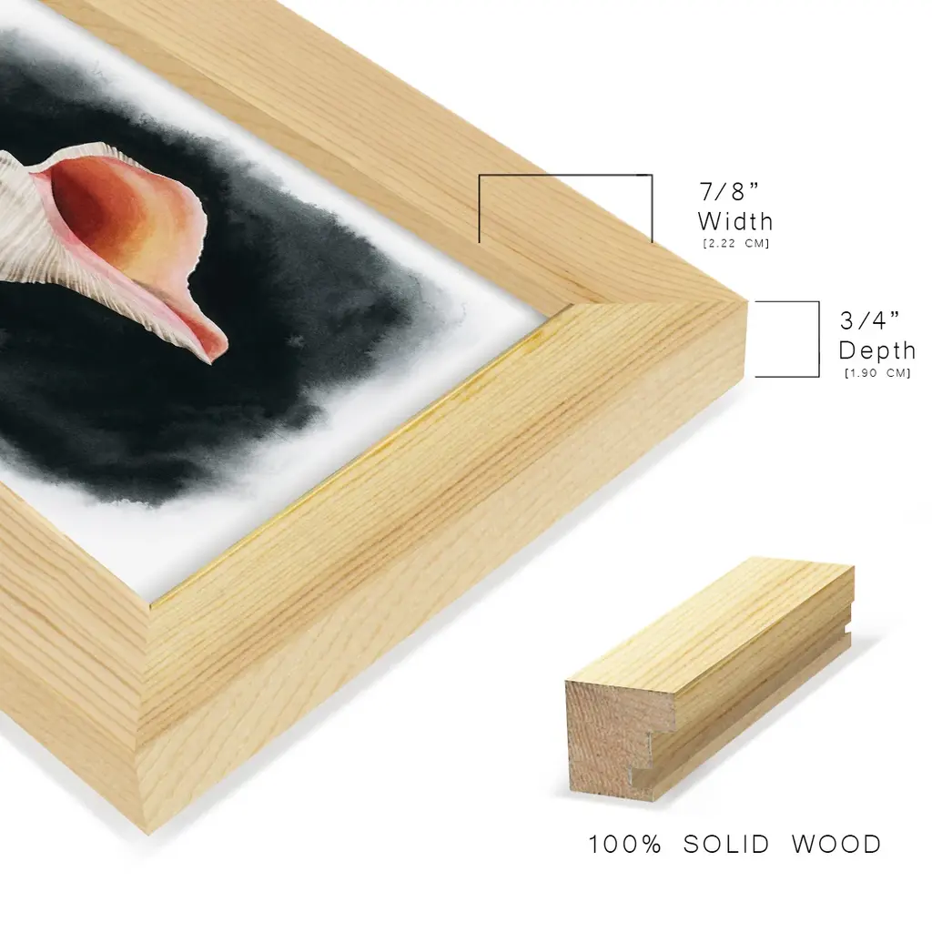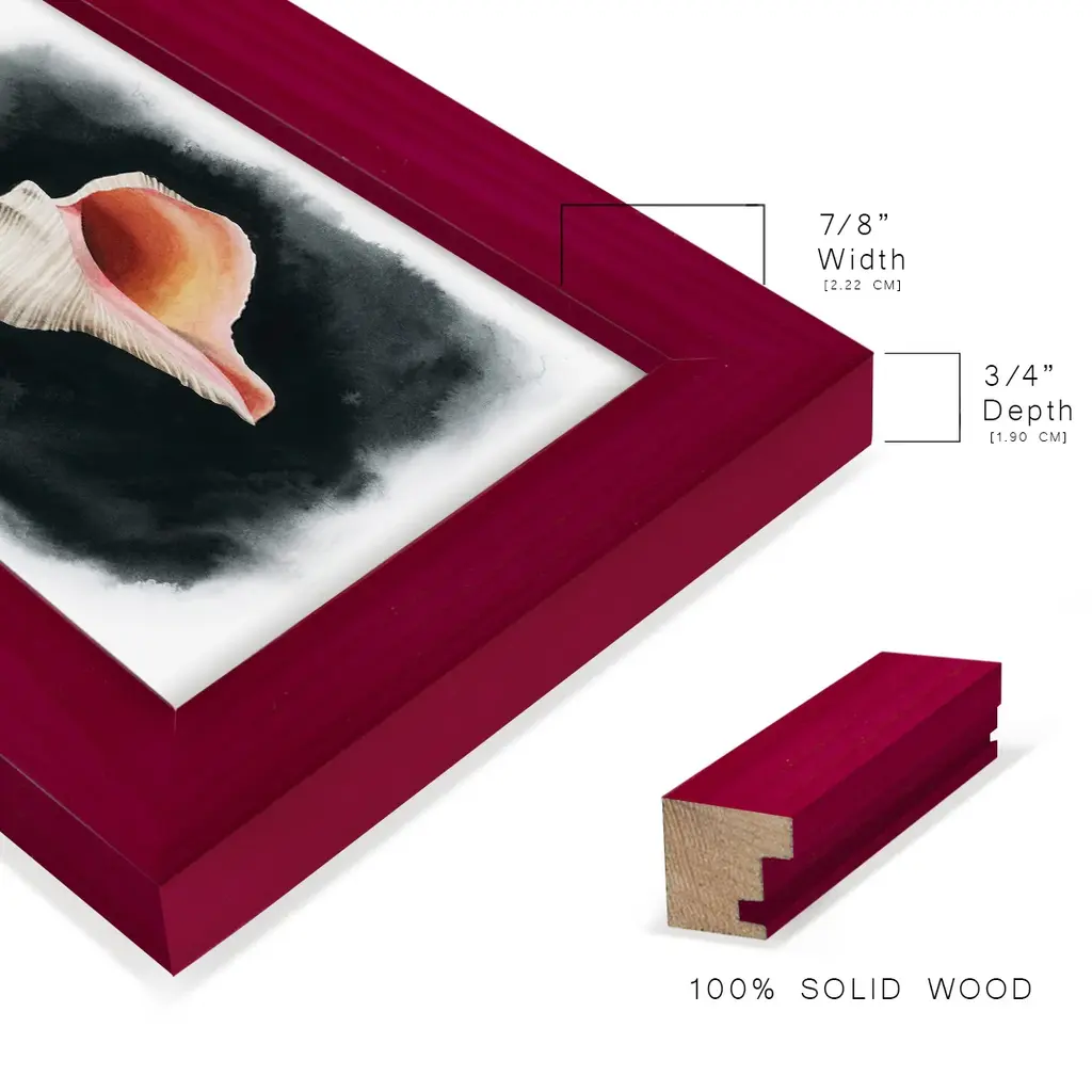 Conch on Black II -EZ SWITCH Framed Print w/glass-Cherry Red A delightful, framed print. Featuring a solid wood frame with real wood glass. This premium print is giclee quality. In addition, every frame features a removable back and table top stand. This allows you to change your art in the future or to just stand the art on a table for a new look. We are sure you'll enjoy our new series of EZ SWITCH Framed Art. Solid Wood Frame Real Glass Removable / Replaceable Art Built in Tabletop Stand Sizes range from 4x6 up to 12x15 - buy just one or pair them up as sets as you see fit.