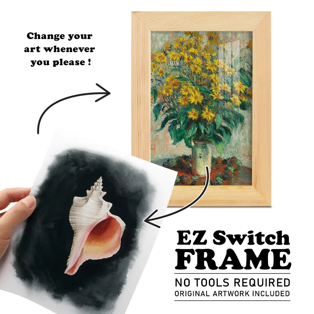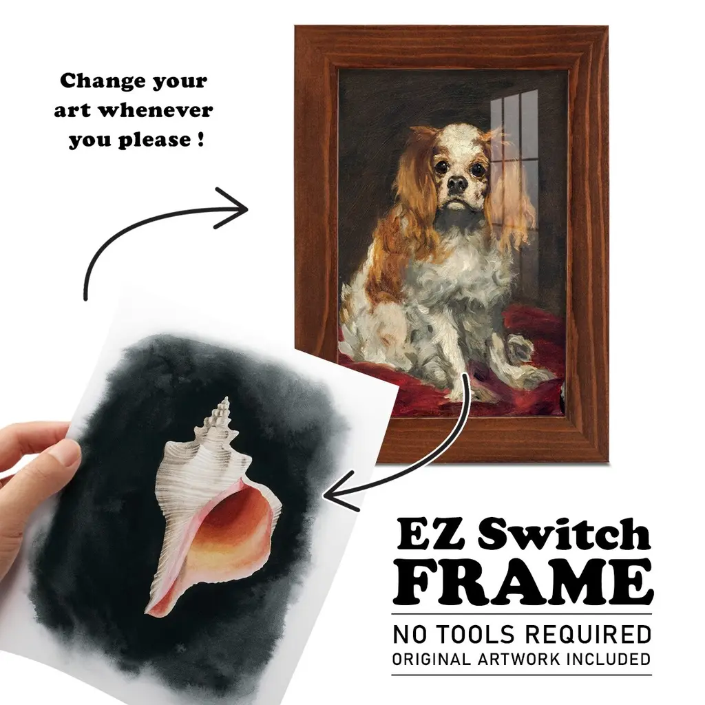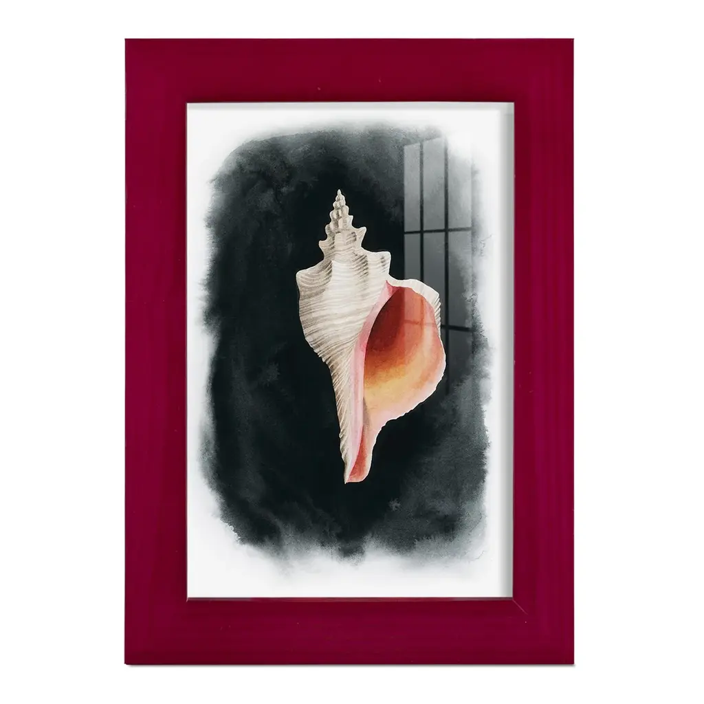 Conch on Black II -EZ SWITCH Framed Print w/glass-Cherry Red A delightful, framed print. Featuring a solid wood frame with real wood glass. This premium print is giclee quality. In addition, every frame features a removable back and table top stand. This allows you to change your art in the future or to just stand the art on a table for a new look. We are sure you'll enjoy our new series of EZ SWITCH Framed Art. Solid Wood Frame Real Glass Removable / Replaceable Art Built in Tabletop Stand Sizes range from 4x6 up to 12x15 - buy just one or pair them up as sets as you see fit.