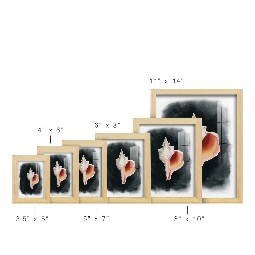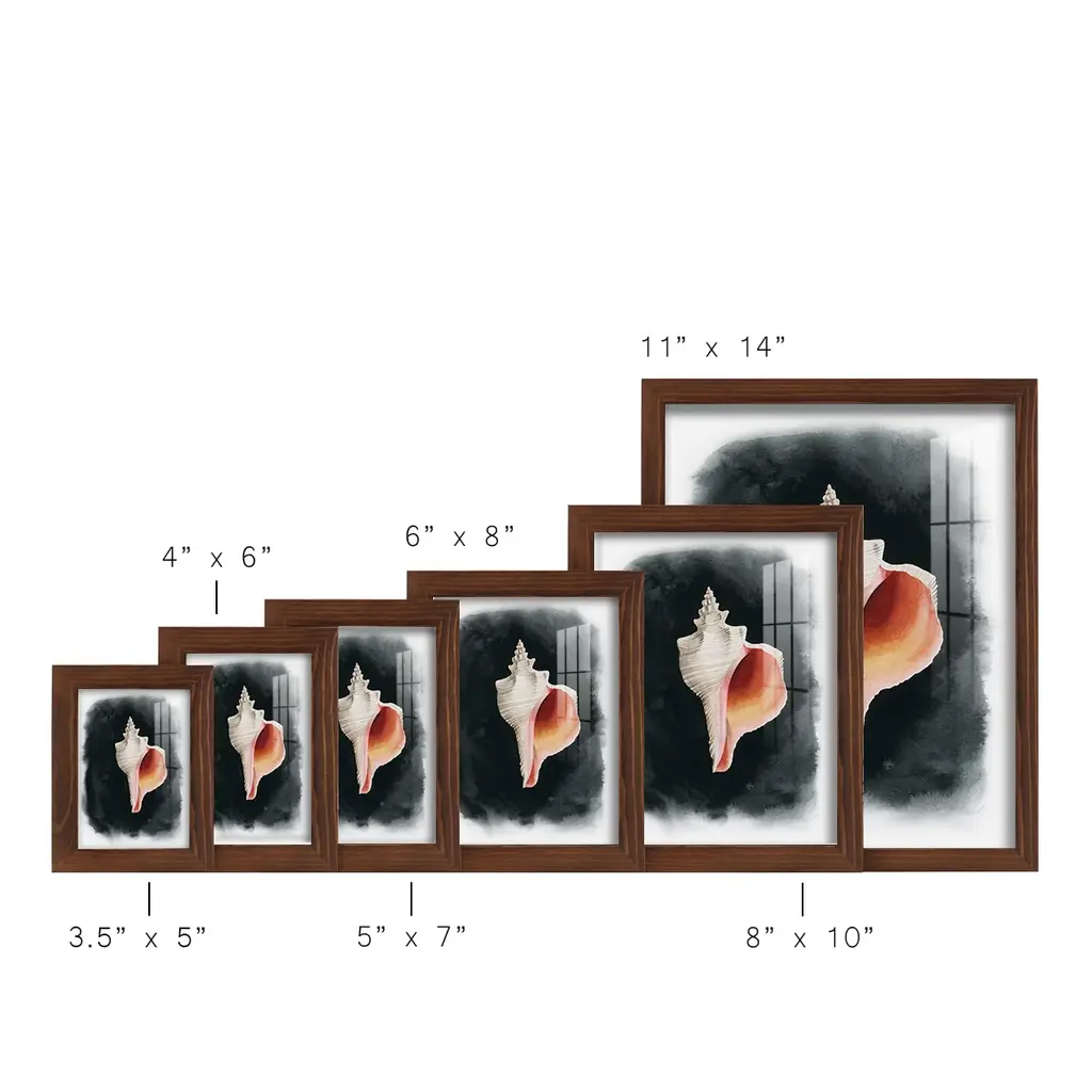 Conch on Black II -EZ SWITCH Framed Print w/glass-Cherry Red A delightful, framed print. Featuring a solid wood frame with real wood glass. This premium print is giclee quality. In addition, every frame features a removable back and table top stand. This allows you to change your art in the future or to just stand the art on a table for a new look. We are sure you'll enjoy our new series of EZ SWITCH Framed Art. Solid Wood Frame Real Glass Removable / Replaceable Art Built in Tabletop Stand Sizes range from 4x6 up to 12x15 - buy just one or pair them up as sets as you see fit.