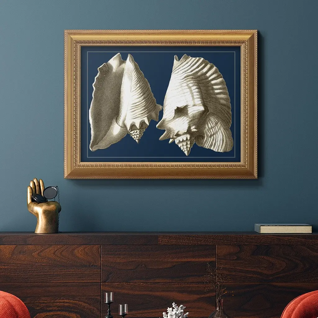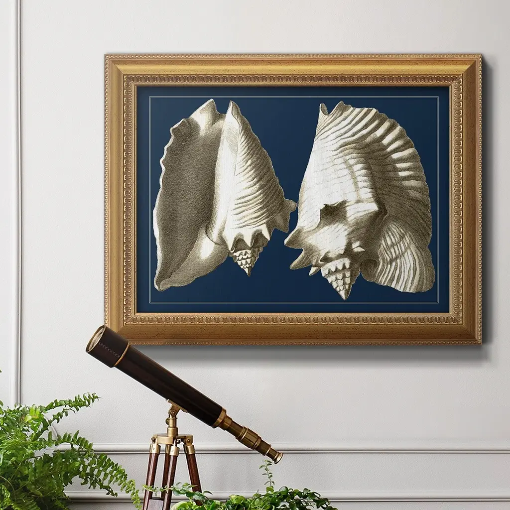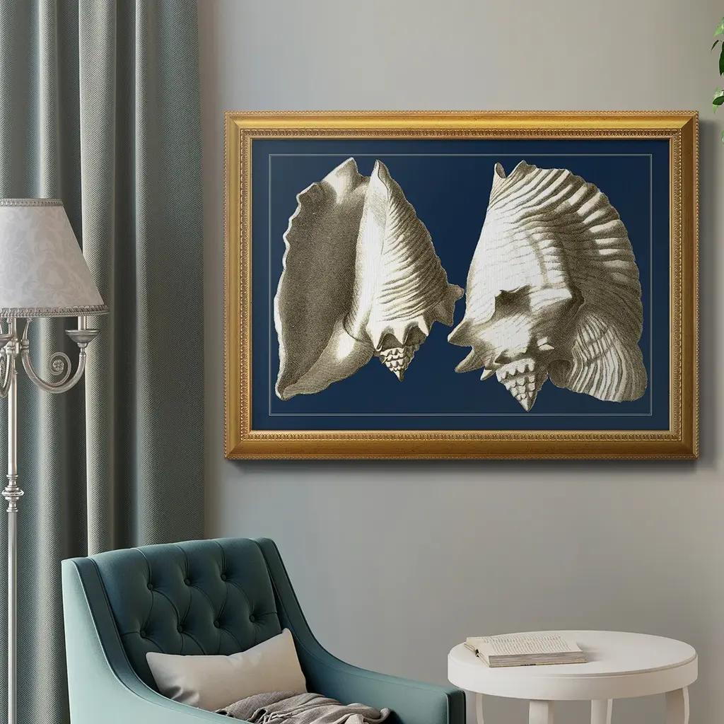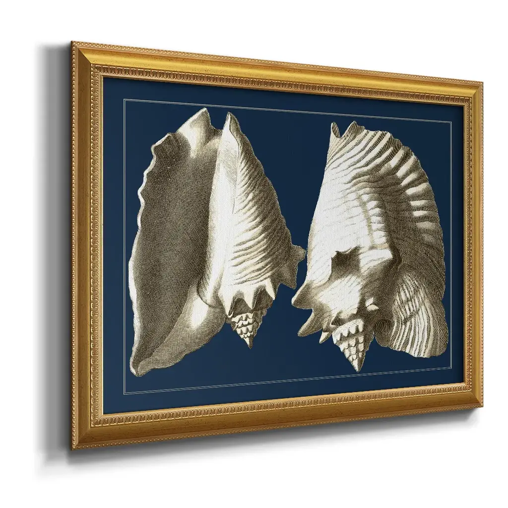 Conch Shells On Navy I Premium Framed Canvas- Ready To Hang - 16x20 - Gold