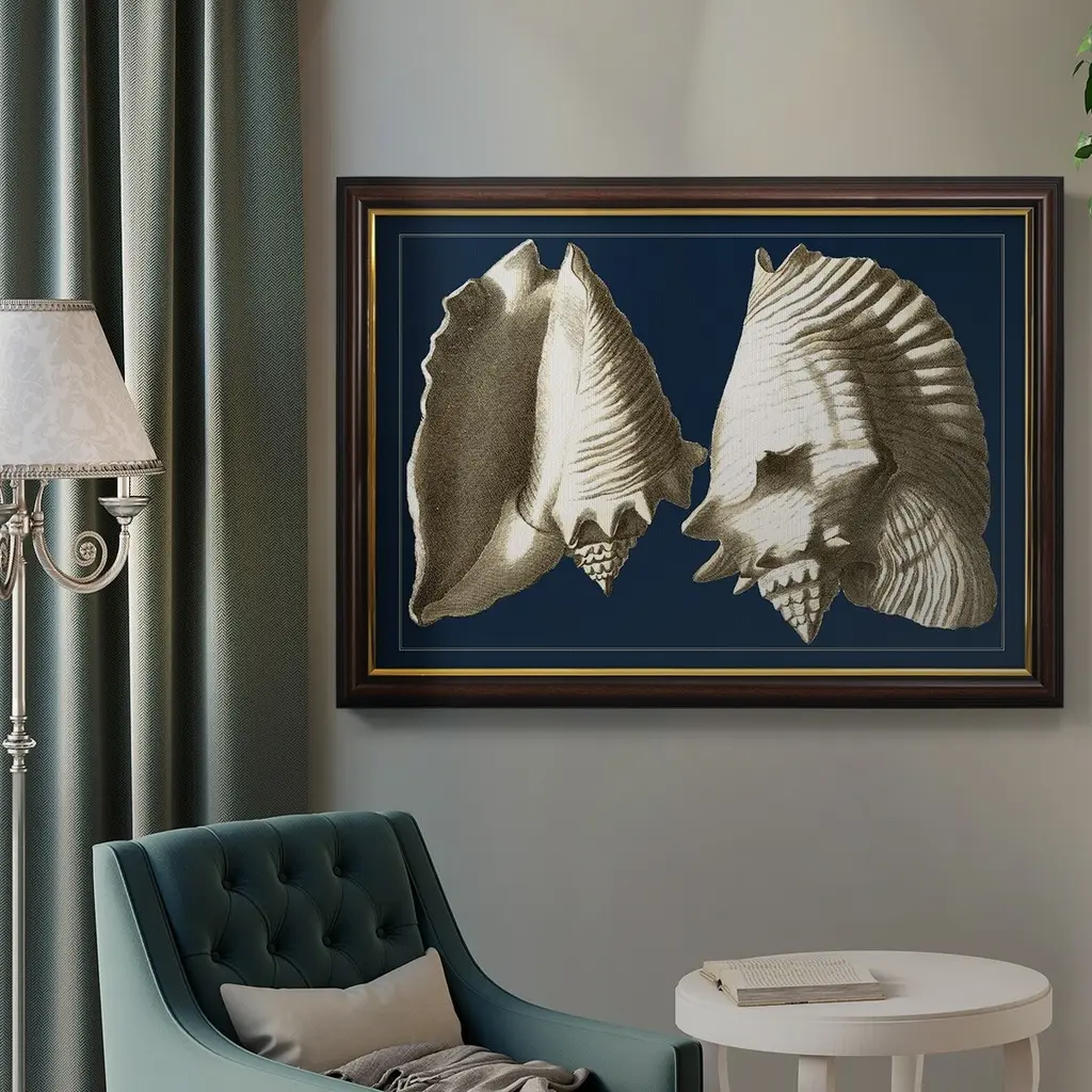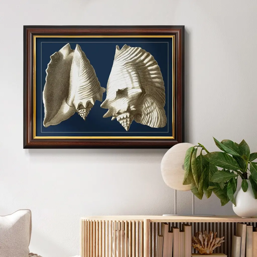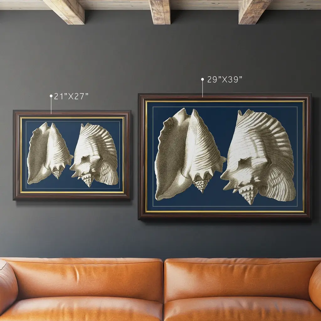 Conch Shells On Navy I Premium Framed Canvas- Ready To Hang - 18x27 - Mahogany
