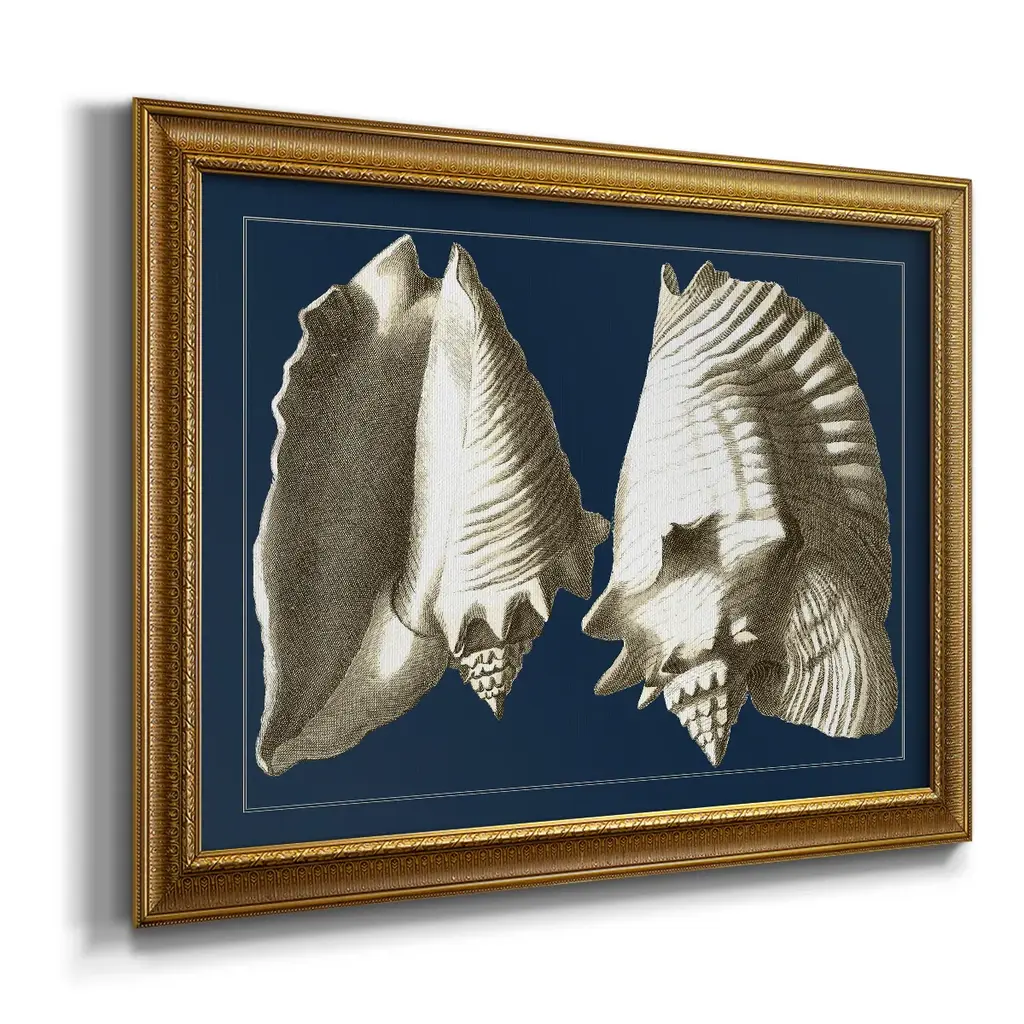 Conch Shells On Navy I Premium Framed Canvas- Ready To Hang - 24x36 - Gold