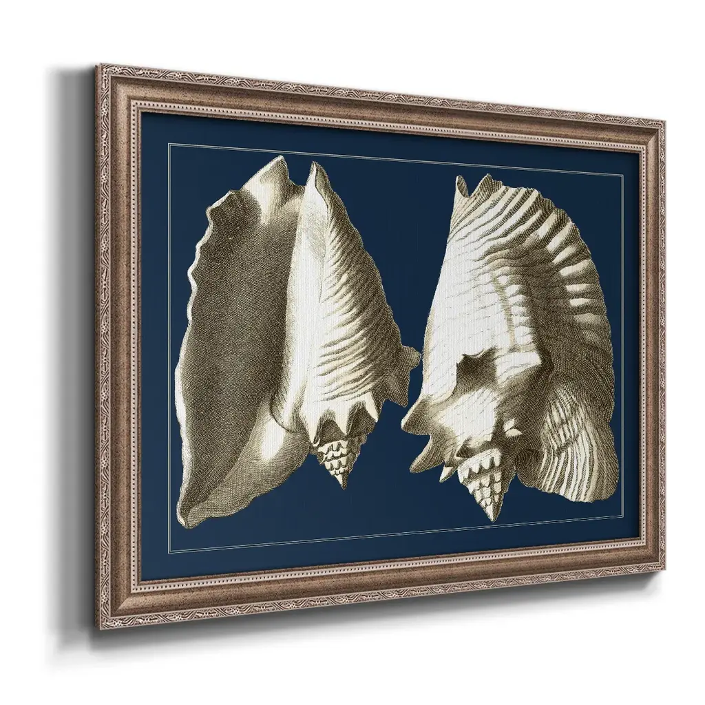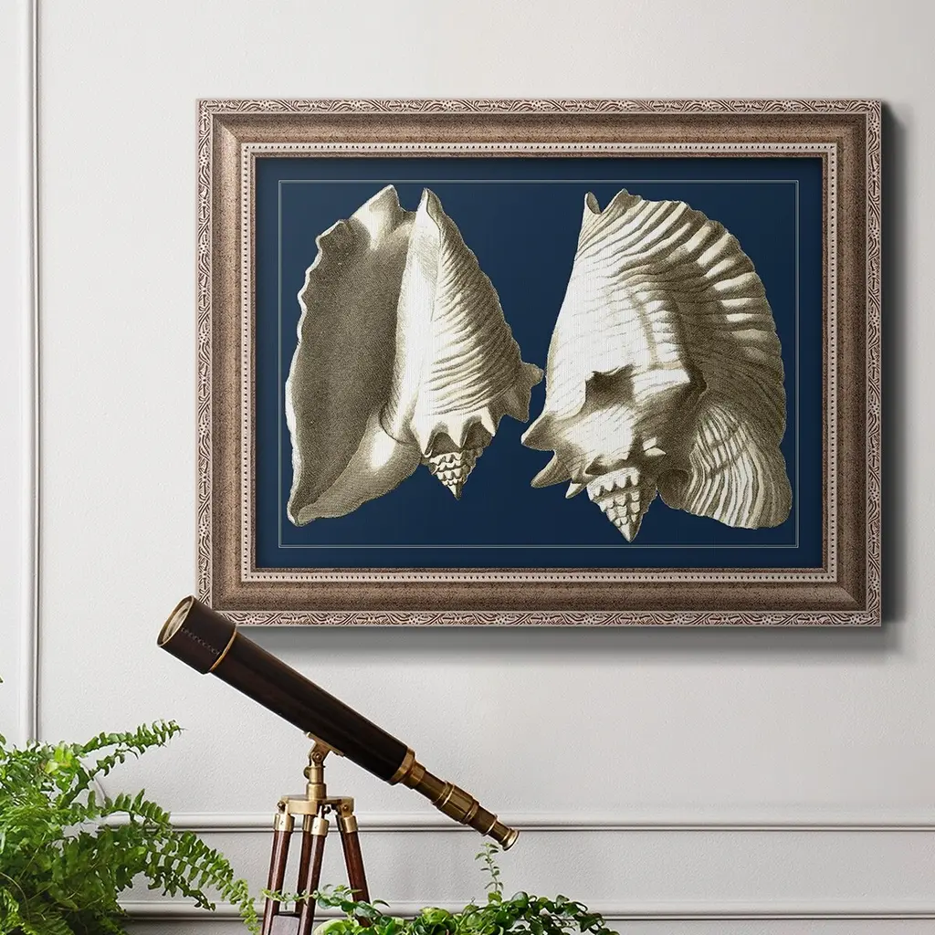 Conch Shells On Navy I Premium Framed Canvas- Ready To Hang - 24x36 - Pewter