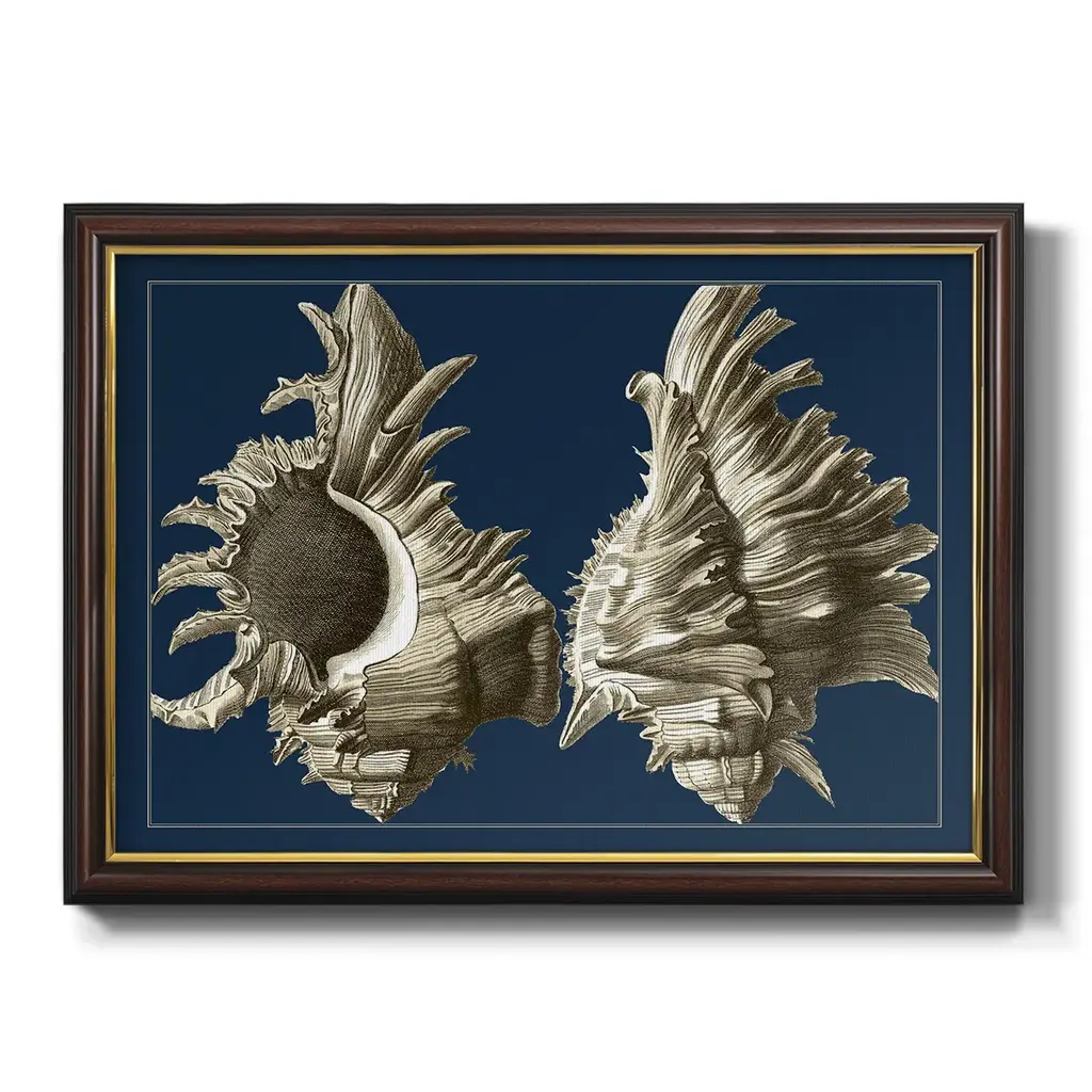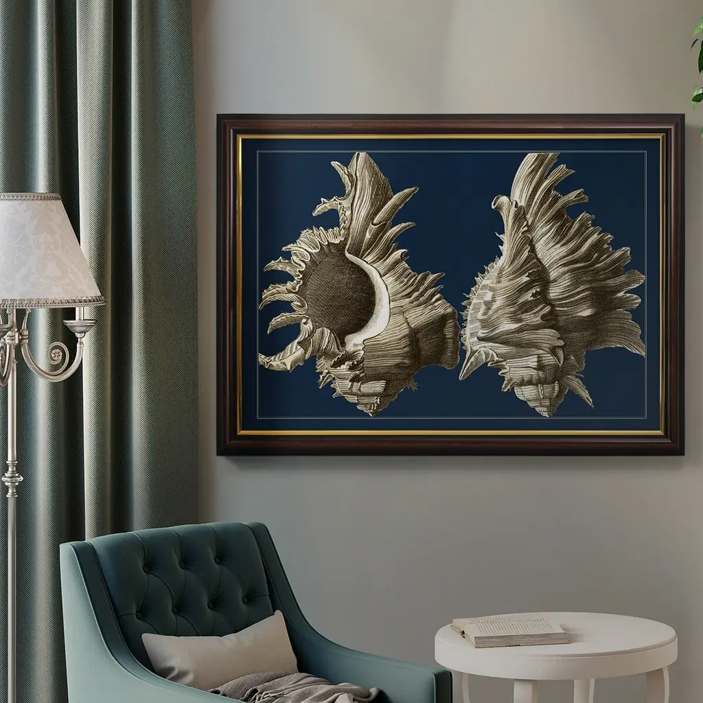 Conch Shells On Navy Ii Premium Framed Canvas- Ready To Hang - 16x20 - Mahogany