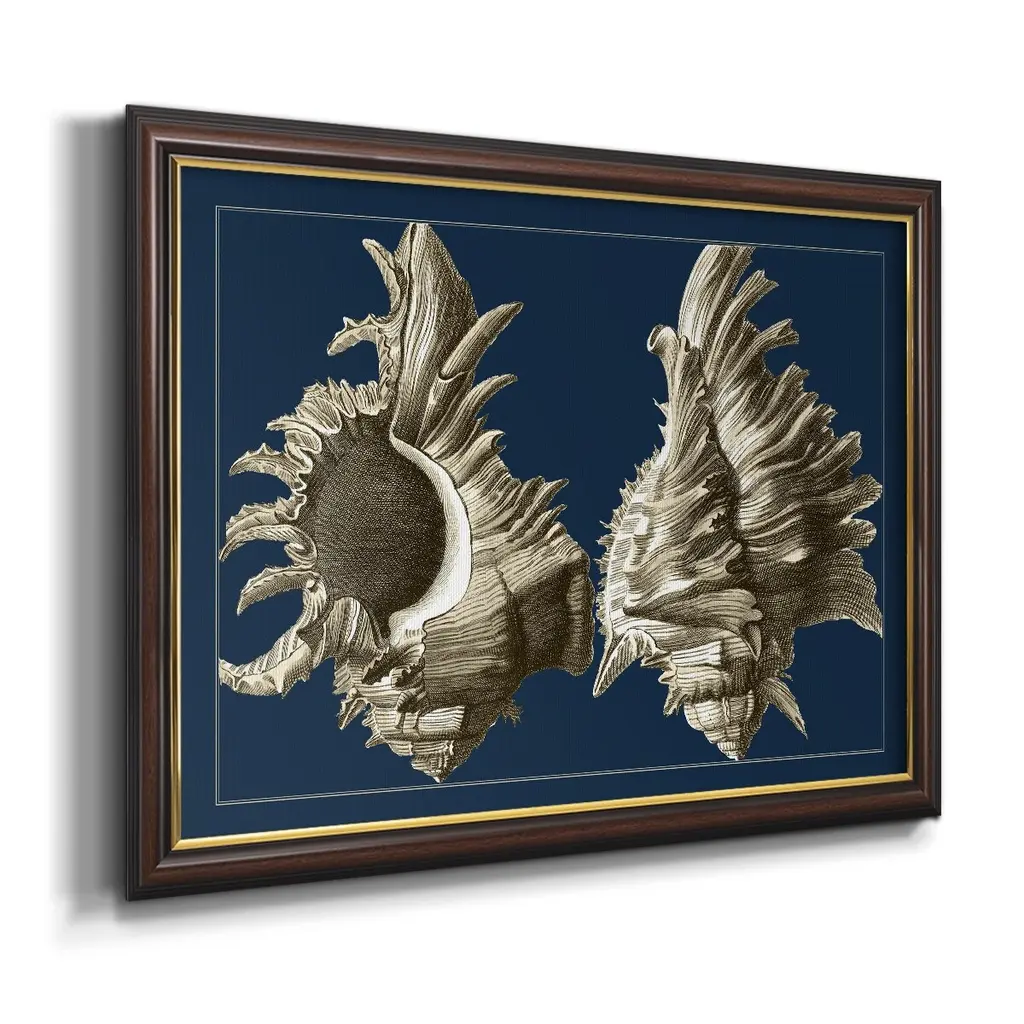 Conch Shells On Navy Ii Premium Framed Canvas- Ready To Hang - 24x36 - Mahogany