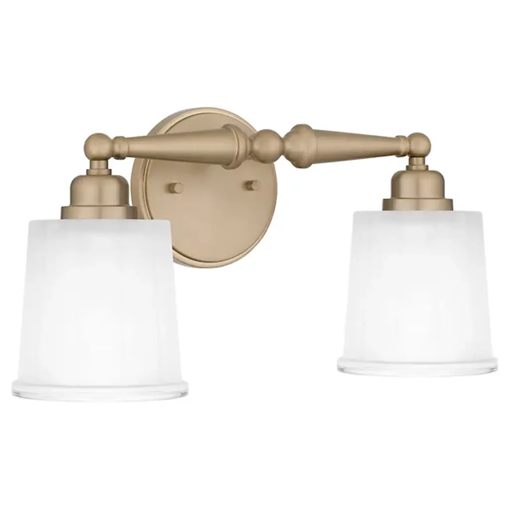 Cone 2 Light 15.5 Inch Satin Gold Bath Vanity Light Wall Light In Matte White