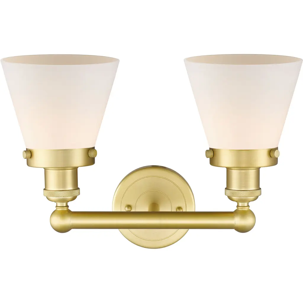 Edison Small Cone - 2 Light 16" Bath Vanity Light - Satin Gold Finish - Matte White Shade