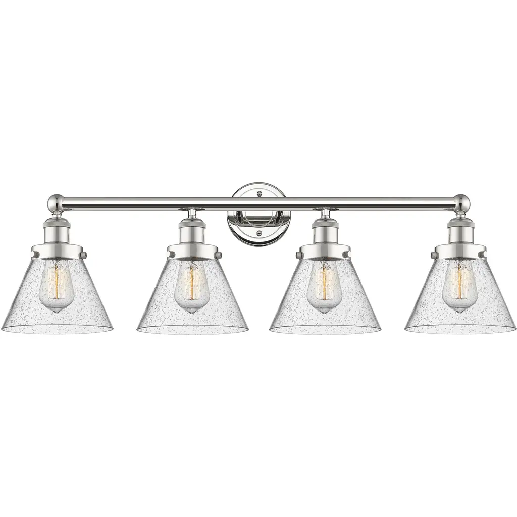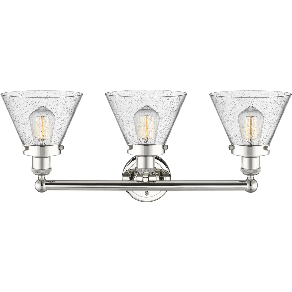 Edison Large Cone - 3 Light 25" Bath Vanity Light - Polished Nickel Finish - Seedy Shade