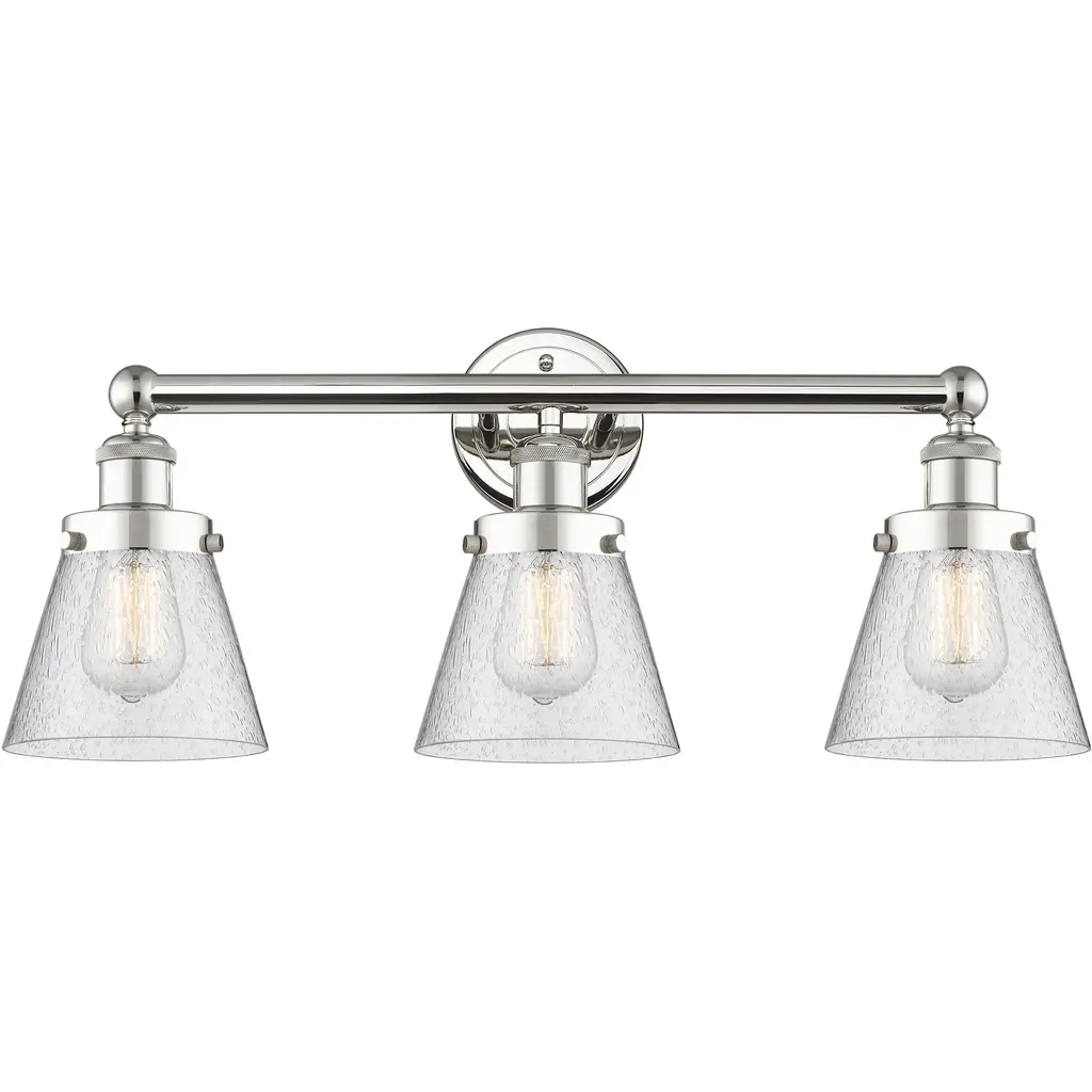 Edison Small Cone - 3 Light 25" Bath Vanity Light - Satin Gold Finish - Seedy Shade