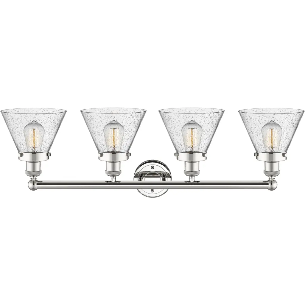 Large Cone - 4 Light 34" Bath Vanity Light - Polished Nickel Finish - Seedy Shade