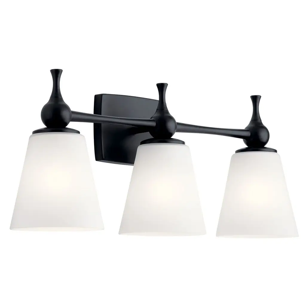 Get ready for your day with the Cone Vanity Light by Abra. A circular backplate remains fixed to your wall, providing a foundation for a sleek steel bar. From the bar hangs a trio of conical glasses that contain brilliant LEDs. The clear glass design allows you to gaze upon the cylindrical form of each bulb. The metalwork formed at the tops of the glass casings creates circular features which complement the fixture’s rounded look. The brightness of the lights is adjustable when you add an ELV dimmer to your piece.