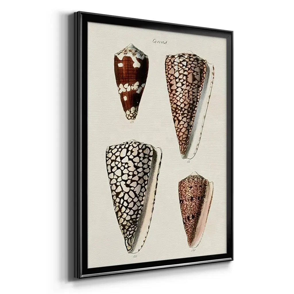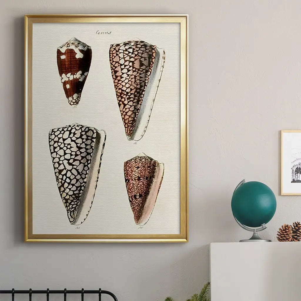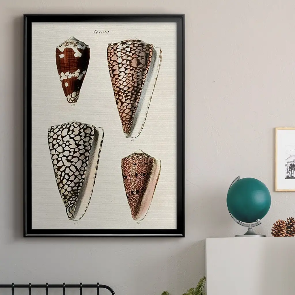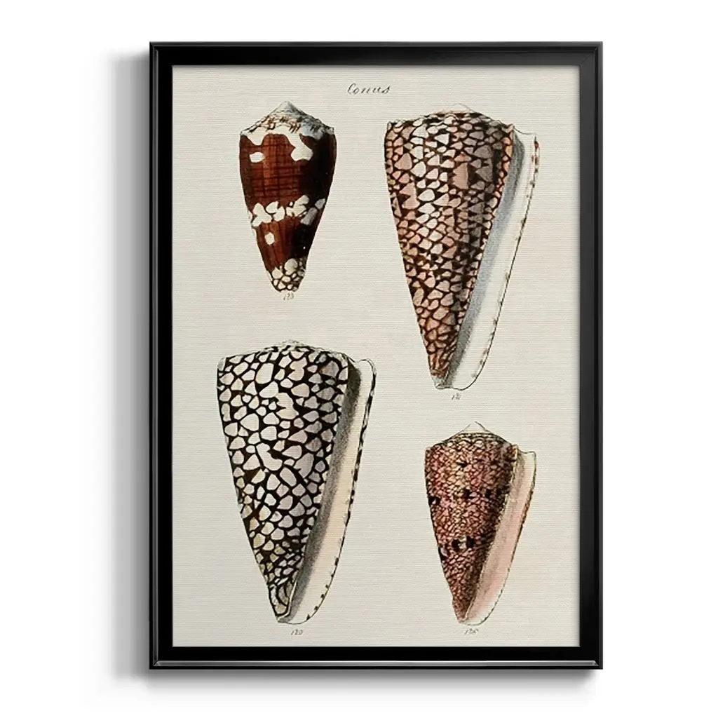 Cone Shell Collection I Premium Framed Print - Ready to Hang A Premium Framed Print created to last. Framed in distressed wood and available in an array of sizes and colors Featuring a beveled a solid wood stretcher bar, each piece comes ready to hand 4 SIZES AVAILABLE 30.5''X42.5'' - Overall Size 26.5'X36.5'' - Overall Size 22.5''x30.5'' - Overall Size 18.5''x24.5'' - Overall Size Each piece is made to order. Each piece comes with hanging hardware. Made in the USA Ready to Hang