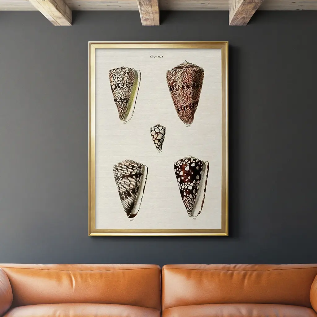 Cone Shell Collection III Premium Framed Print - Ready to Hang A Premium Framed Print created to last. Framed in distressed wood and available in an array of sizes and colors Featuring a beveled a solid wood stretcher bar, each piece comes ready to hand 4 SIZES AVAILABLE 30.5''X42.5'' - Overall Size 26.5'X36.5'' - Overall Size 22.5''x30.5'' - Overall Size 18.5''x24.5'' - Overall Size Each piece is made to order. Each piece comes with hanging hardware. Made in the USA Ready to Hang