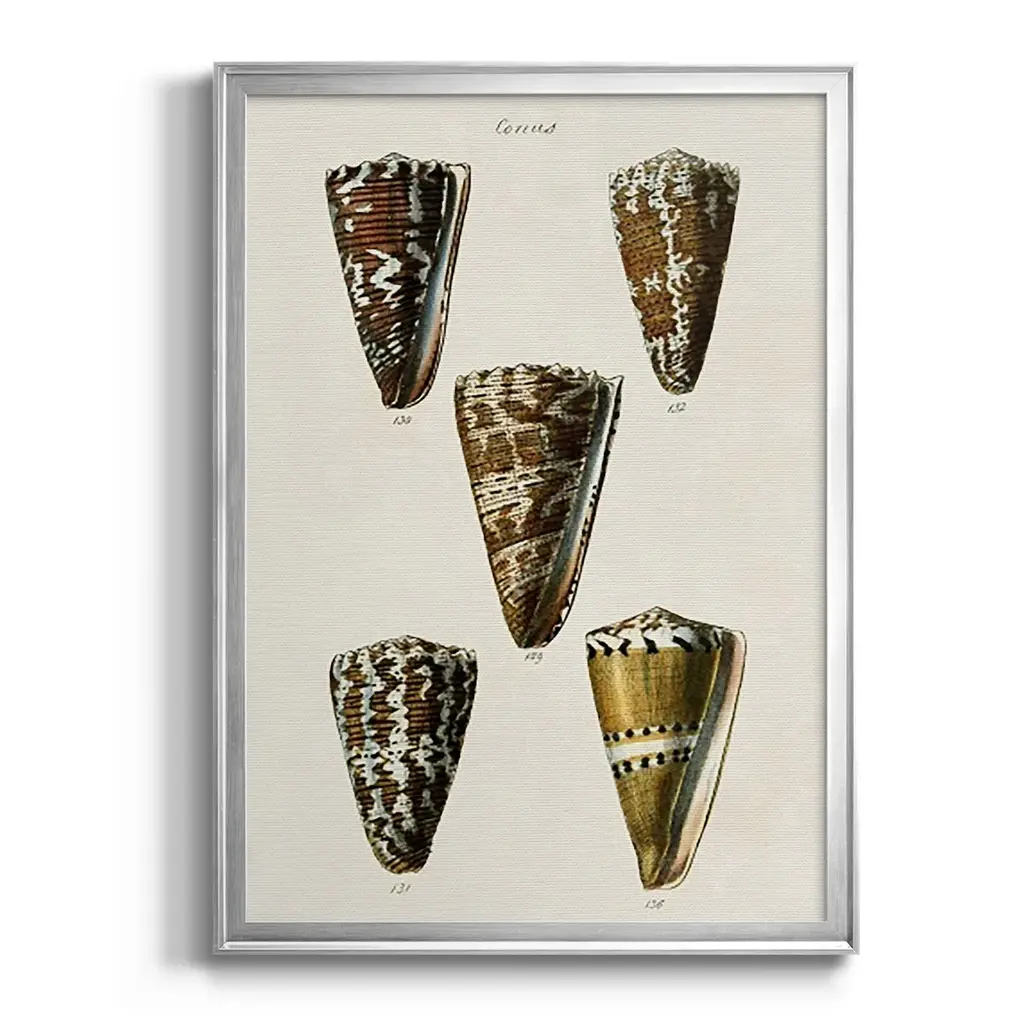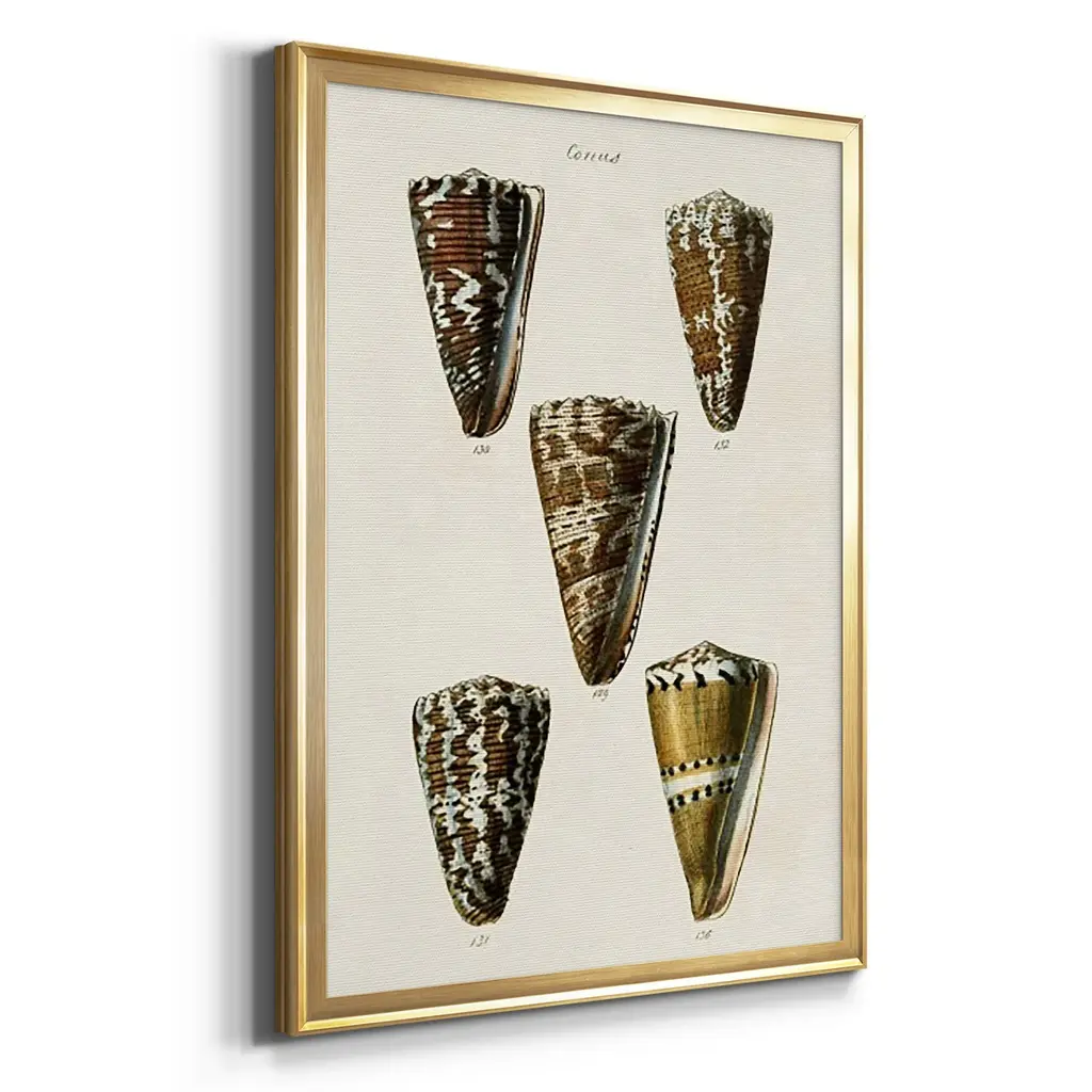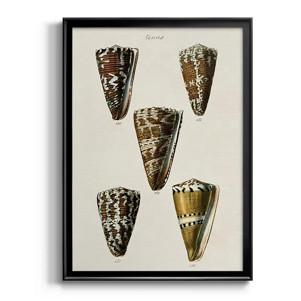 Cone Shell Collection V Premium Framed Print - Ready to Hang A Premium Framed Print created to last. Framed in distressed wood and available in an array of sizes and colors Featuring a beveled a solid wood stretcher bar, each piece comes ready to hand 4 SIZES AVAILABLE 30.5''X42.5'' - Overall Size 26.5'X36.5'' - Overall Size 22.5''x30.5'' - Overall Size 18.5''x24.5'' - Overall Size Each piece is made to order. Each piece comes with hanging hardware. Made in the USA Ready to Hang