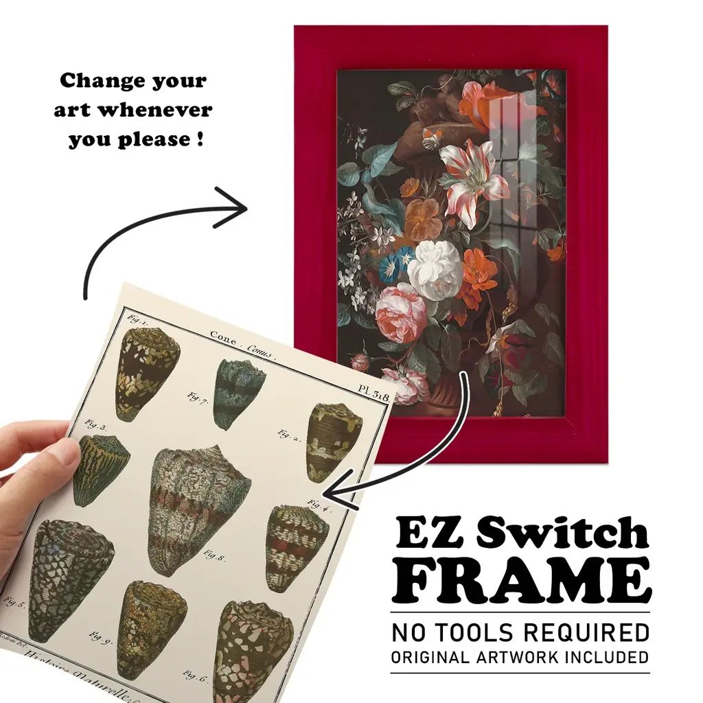 Cone Shell pl. 318 -EZ SWITCH Framed Print w/glass-Cherry Red A delightful, framed print. Featuring a solid wood frame with real wood glass. This premium print is giclee quality. In addition, every frame features a removable back and table top stand. This allows you to change your art in the future or to just stand the art on a table for a new look. We are sure you'll enjoy our new series of EZ SWITCH Framed Art. Solid Wood Frame Real Glass Removable / Replaceable Art Built in Tabletop Stand Sizes range from 4x6 up to 12x15 - buy just one or pair them up as sets as you see fit.