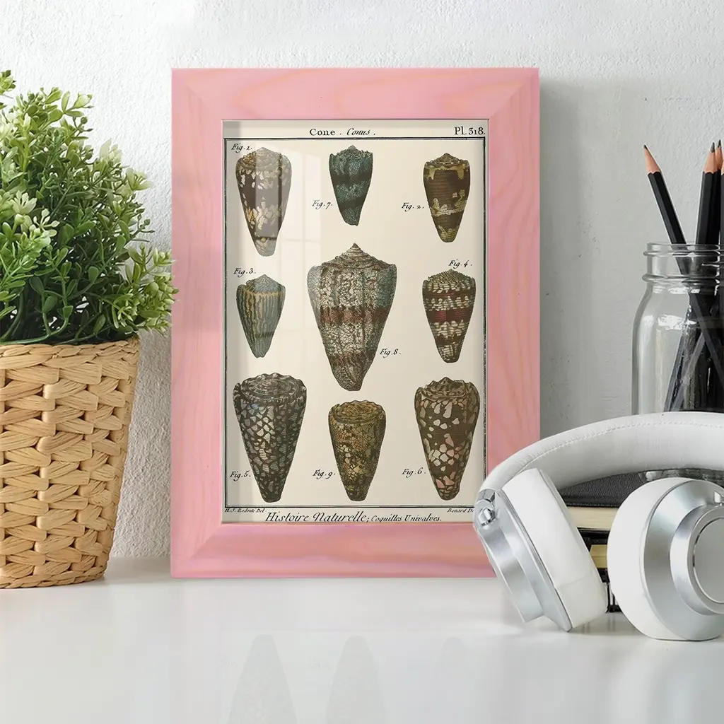 Cone Shell pl. 318 -EZ SWITCH Framed Print w/glass-Cherry Red A delightful, framed print. Featuring a solid wood frame with real wood glass. This premium print is giclee quality. In addition, every frame features a removable back and table top stand. This allows you to change your art in the future or to just stand the art on a table for a new look. We are sure you'll enjoy our new series of EZ SWITCH Framed Art. Solid Wood Frame Real Glass Removable / Replaceable Art Built in Tabletop Stand Sizes range from 4x6 up to 12x15 - buy just one or pair them up as sets as you see fit.