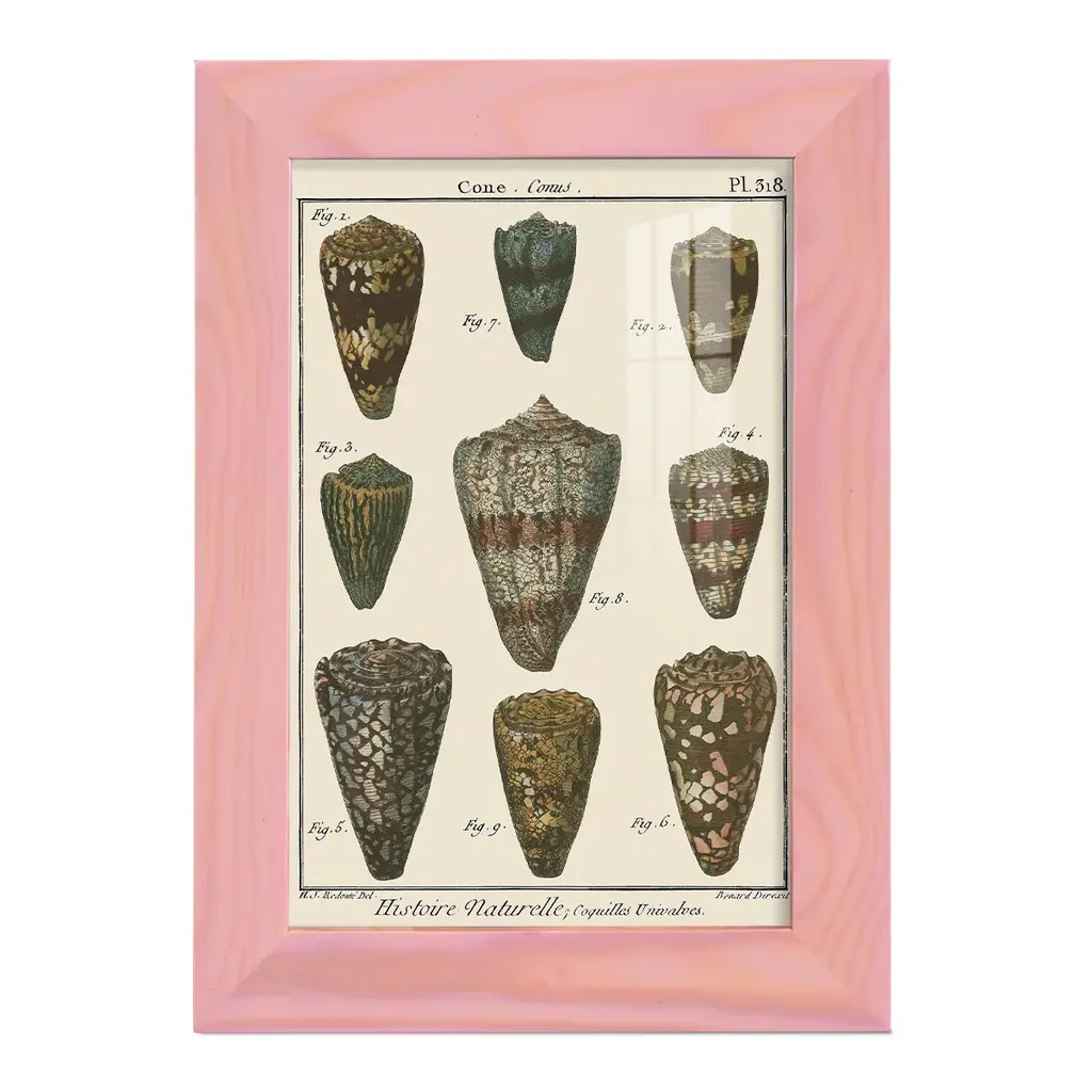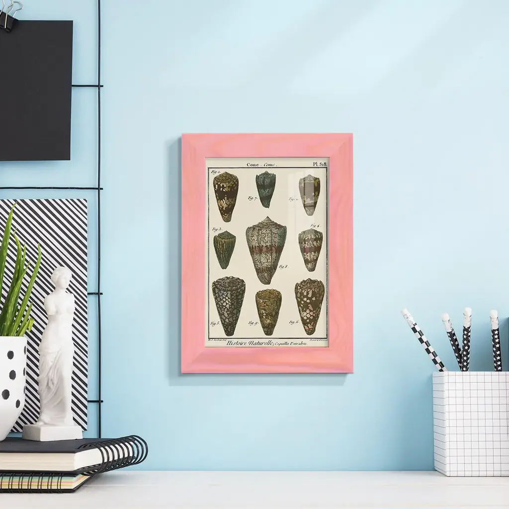 Cone Shell pl. 318 -EZ SWITCH Framed Print w/glass-Cherry Red A delightful, framed print. Featuring a solid wood frame with real wood glass. This premium print is giclee quality. In addition, every frame features a removable back and table top stand. This allows you to change your art in the future or to just stand the art on a table for a new look. We are sure you'll enjoy our new series of EZ SWITCH Framed Art. Solid Wood Frame Real Glass Removable / Replaceable Art Built in Tabletop Stand Sizes range from 4x6 up to 12x15 - buy just one or pair them up as sets as you see fit.