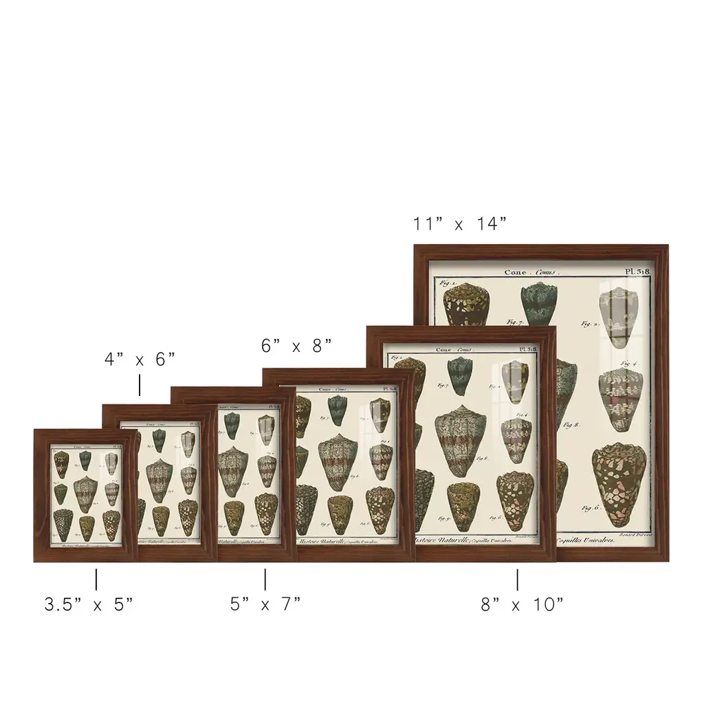 Cone Shell pl. 318 -EZ SWITCH Framed Print w/glass-Cherry Red A delightful, framed print. Featuring a solid wood frame with real wood glass. This premium print is giclee quality. In addition, every frame features a removable back and table top stand. This allows you to change your art in the future or to just stand the art on a table for a new look. We are sure you'll enjoy our new series of EZ SWITCH Framed Art. Solid Wood Frame Real Glass Removable / Replaceable Art Built in Tabletop Stand Sizes range from 4x6 up to 12x15 - buy just one or pair them up as sets as you see fit.