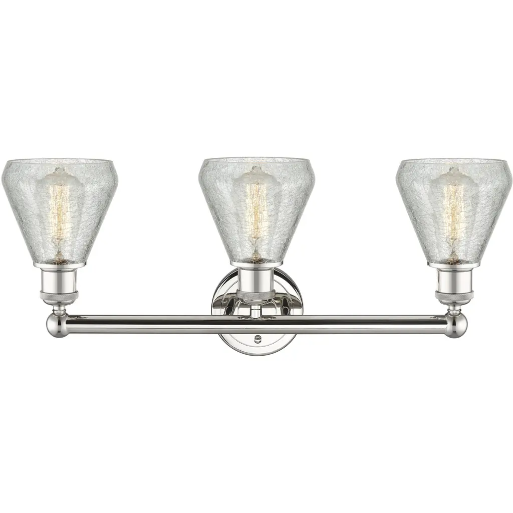 Conesus - 3 Light 24" Bath Vanity Light - Polished Nickel Finish - Clear Crackle Shade