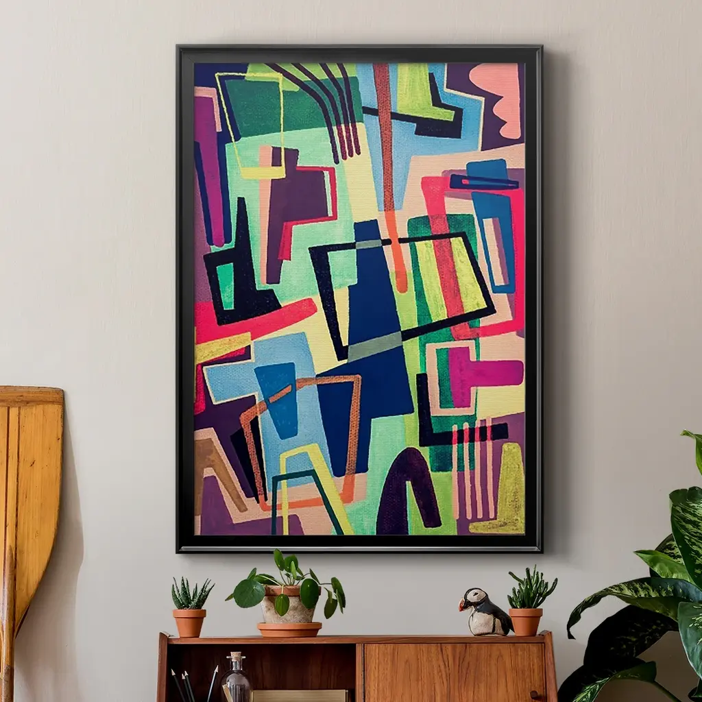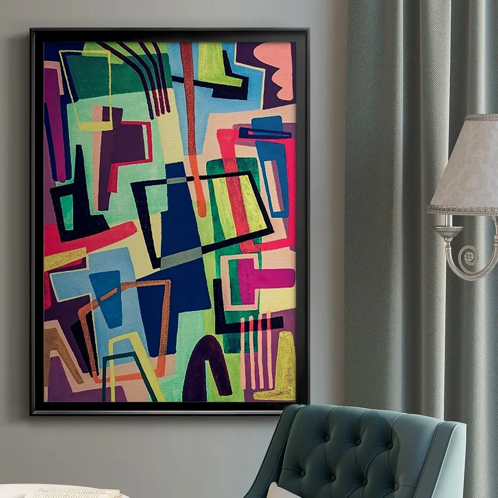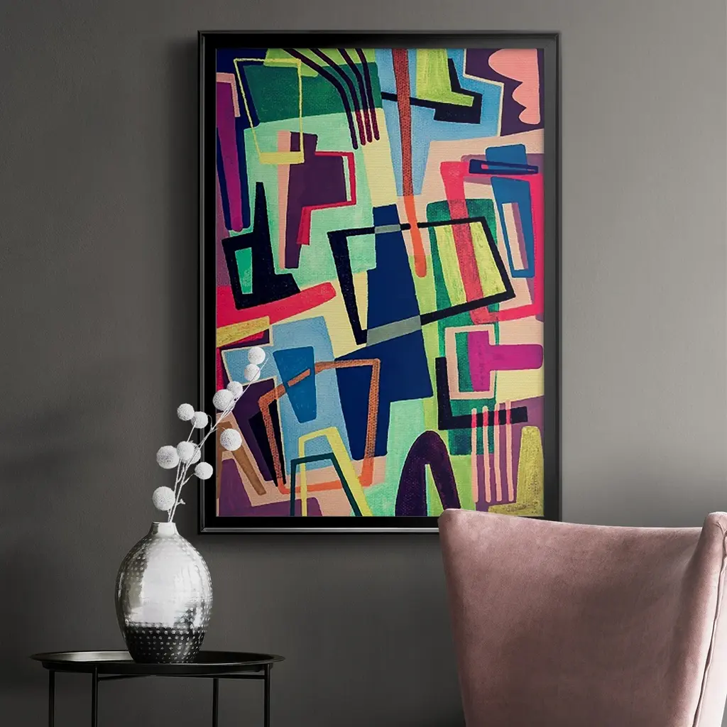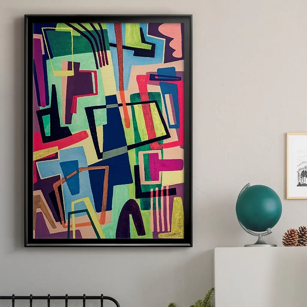 Connected Colors II Premium Framed Print - Ready to Hang A Premium Framed Print created to last. Framed in distressed wood and available in an array of sizes and colors Featuring a beveled a solid wood stretcher bar, each piece comes ready to hand 4 SIZES AVAILABLE 30.5''X42.5'' - Overall Size 26.5'X36.5'' - Overall Size 22.5''x30.5'' - Overall Size 18.5''x24.5'' - Overall Size Each piece is made to order. Each piece comes with hanging hardware. Made in the USA Ready to Hang