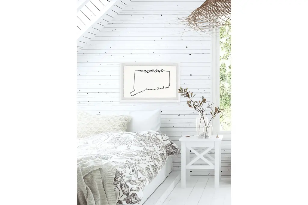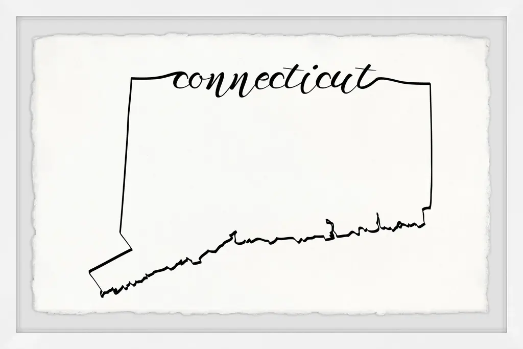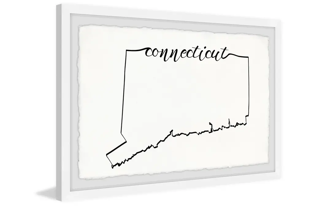 Showcase your love for Connecticut with this black and white textual print that features the state and its shape. This piece is printed on high quality archive paper and professionally hand-framed. With wall-mounting hooks included, this artful accent is ready to hang up as soon as it reaches your front door.Top quality Gicle print on high resolution Archive PaperHand cut deckled edgesHigh quality durable non-warping frameFinished under shatter resistant plexiglassArrives ready to hangIncludes a certificate of authenticityPrinted in the USA