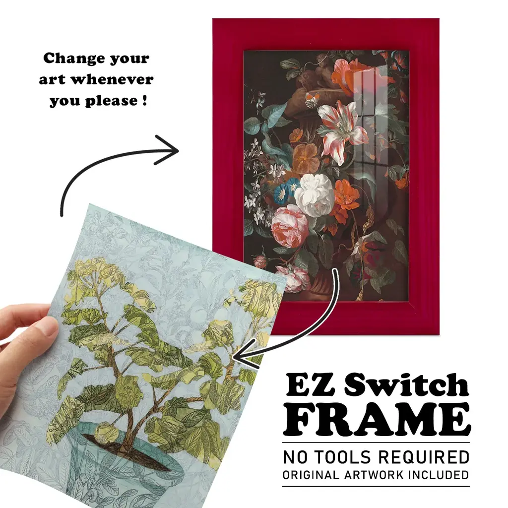 Conservatory Collage II (FWH) -EZ SWITCH Framed Print w/glass-Cherry Red A delightful, framed print. Featuring a solid wood frame with real wood glass. This premium print is giclee quality. In addition, every frame features a removable back and table top stand. This allows you to change your art in the future or to just stand the art on a table for a new look. We are sure you'll enjoy our new series of EZ SWITCH Framed Art. Solid Wood Frame Real Glass Removable / Replaceable Art Built in Tabletop Stand Sizes range from 4x6 up to 12x15 - buy just one or pair them up as sets as you see fit.
