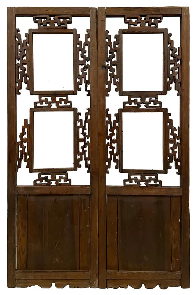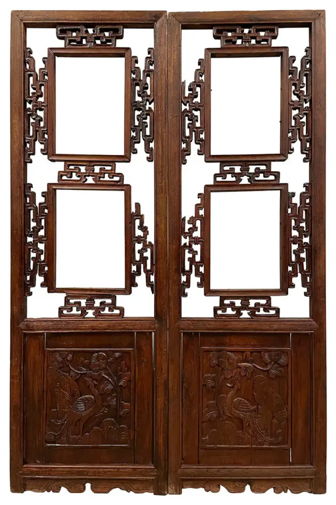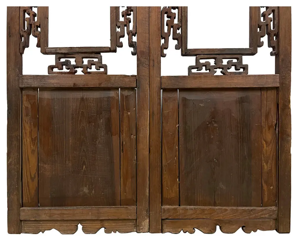 Consigned Antique Chinese Carved Wooden Window Panels Wall Arts - A Pair