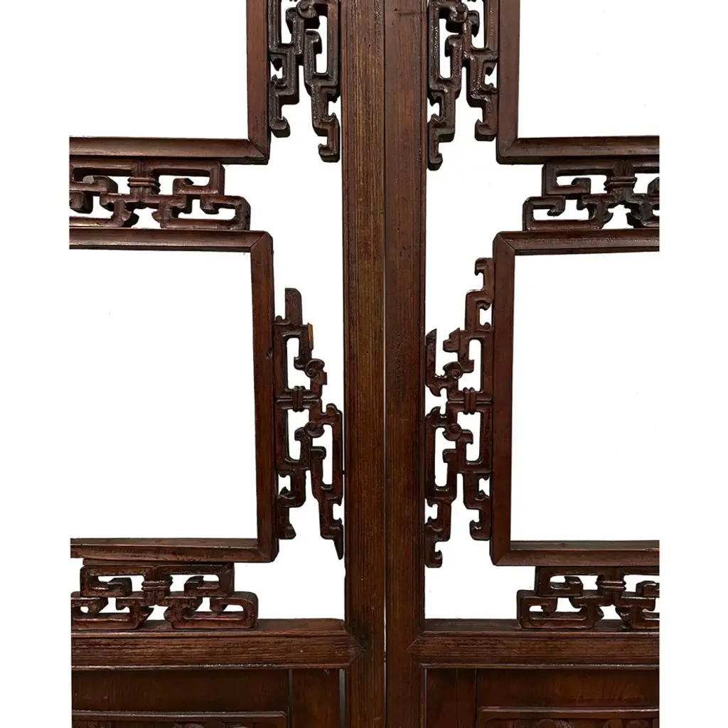 This is a pair of Chinese antique Open Carved interior wooden Window Screen Panels. It features beautiful open carved Chinese traditional folk art design on it and some detailed decorative carving. Look at the beautiful patterns, they are all hand carved. Take look at the pictures, Minor imperfections on the carving due to long age usage but a highly desirable antique collectible that is extremely popular and hard to come by. Don''t miss it!Size: 46in H x 15in W x 1in DOrigin: ChinaCirca: 1850 - 1900Material: WoodCondition: Solid wood construction, very good condition with some minor imperfection on the carving, hand made, hand carved, full of patina, normal age wear Disclaimer: Due to differences in monitor/screen settings, product colors may differ slightly between product photos and the physical product.