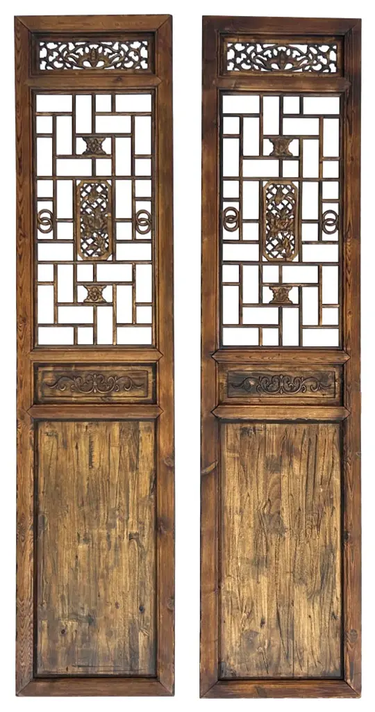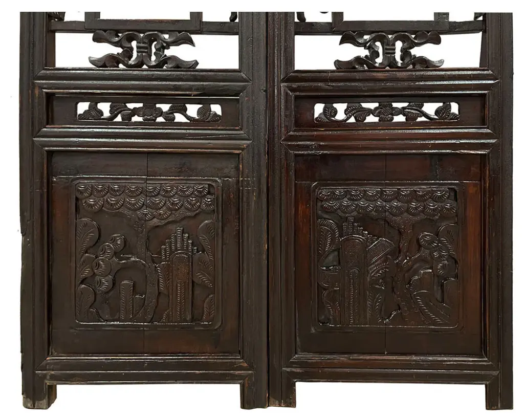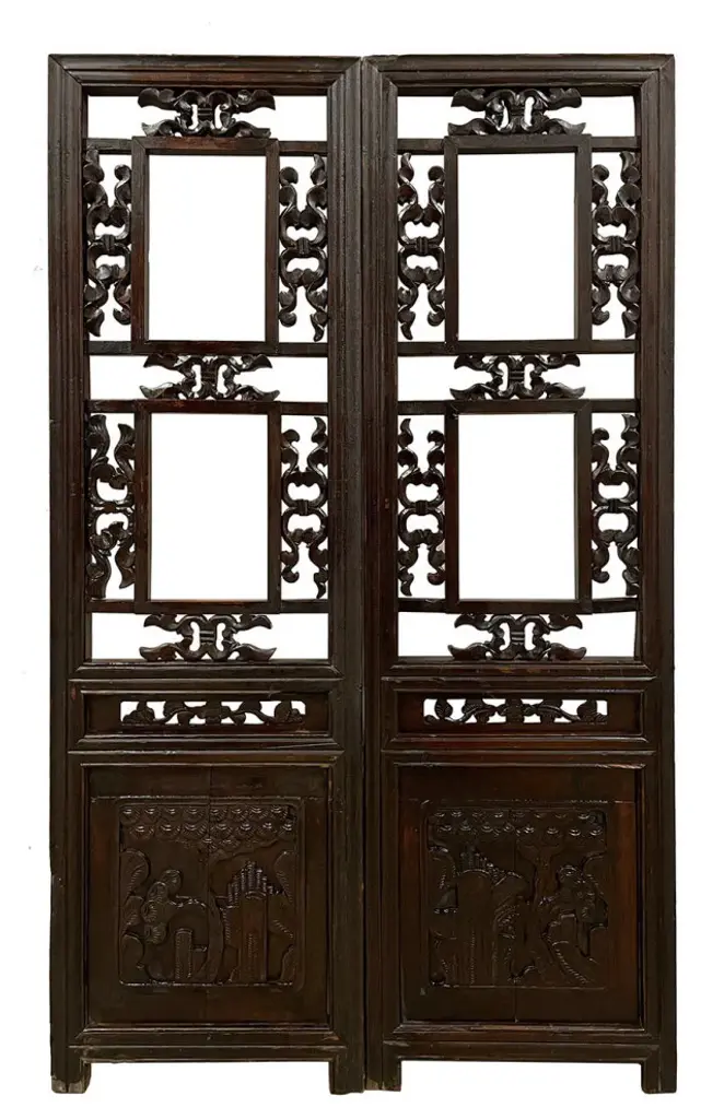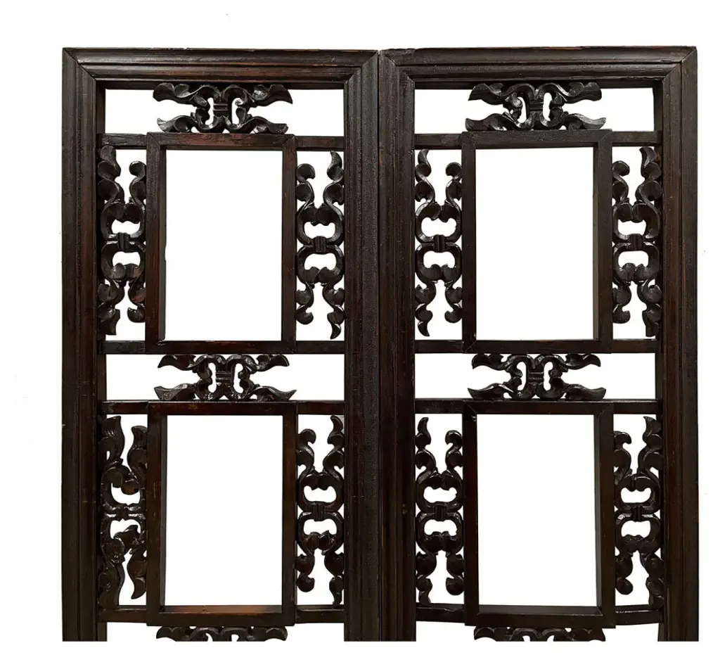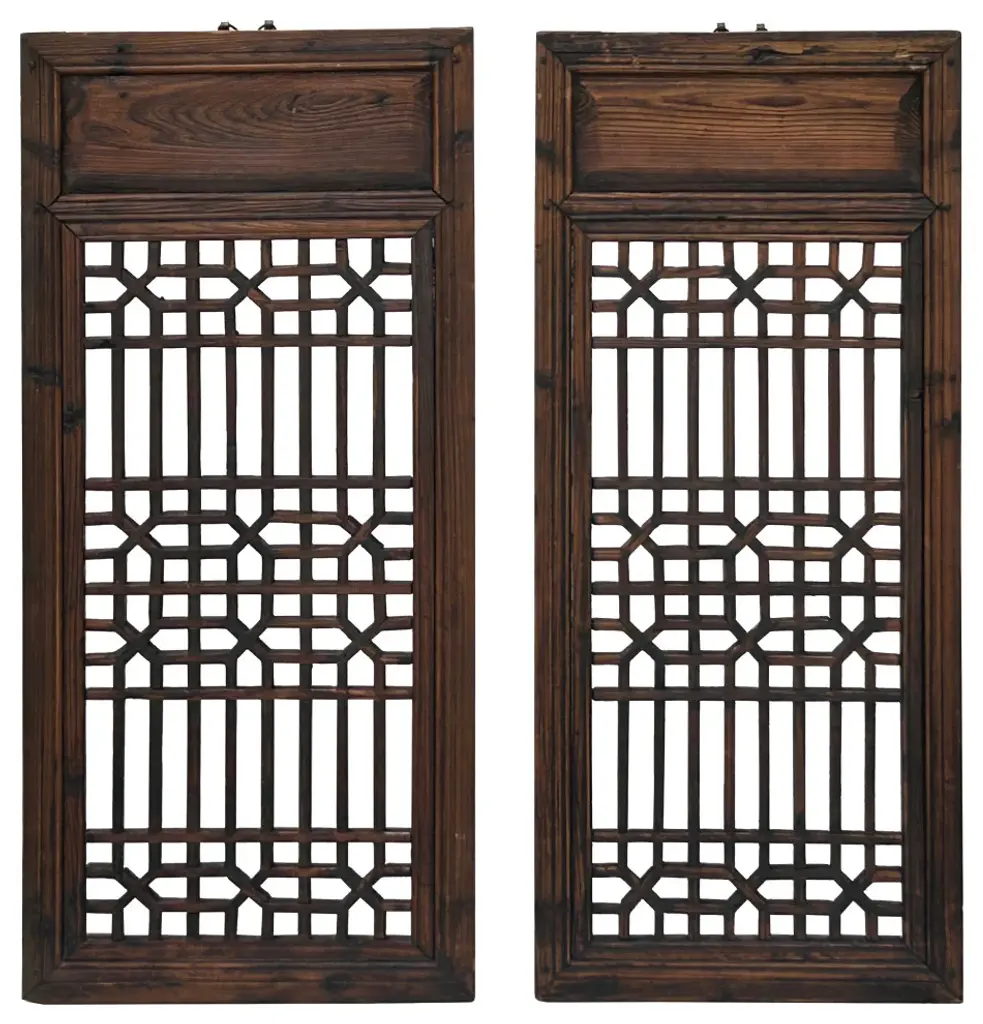 Consigned Antique Chinese Carved Wooden Window Panels Wall Arts - A Pair