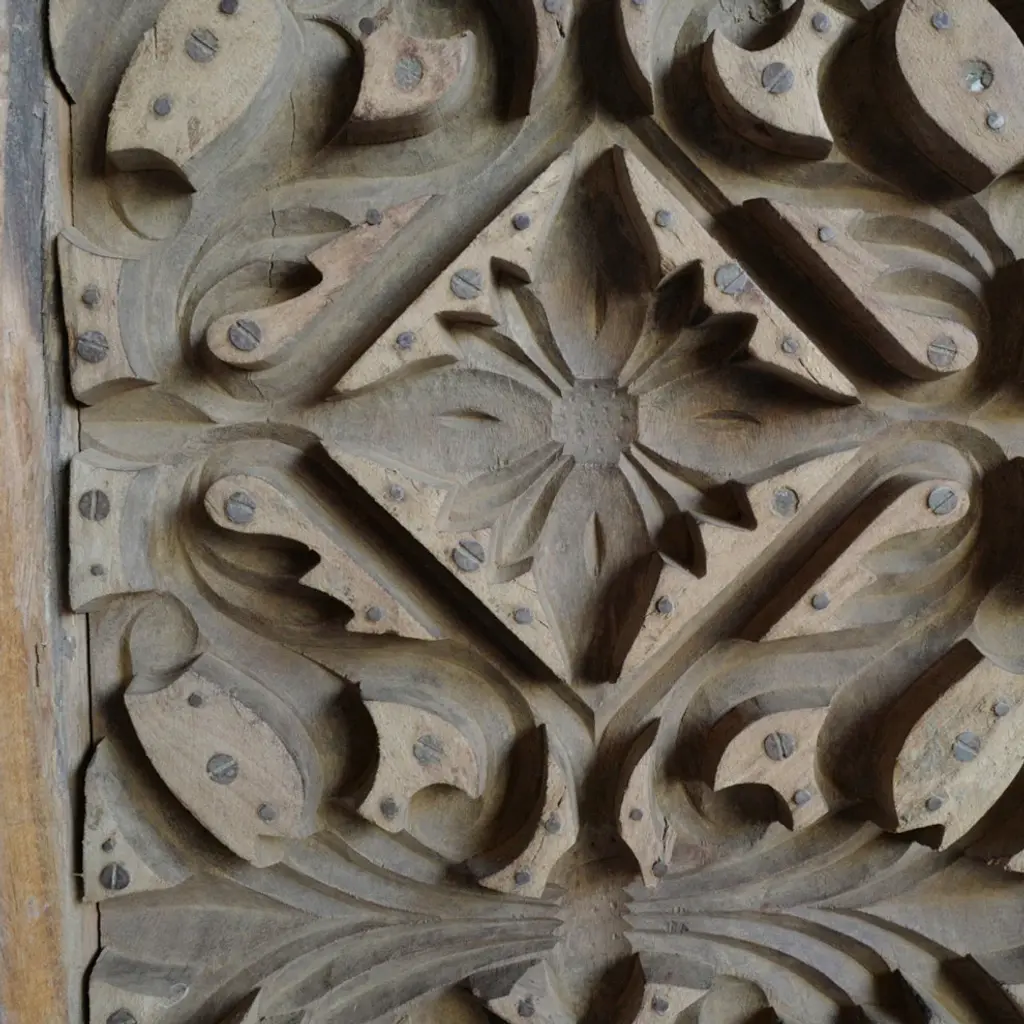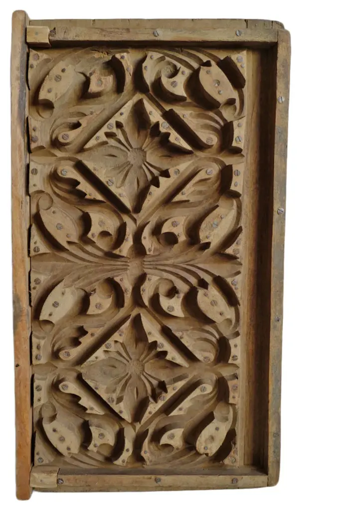 Consigned authentic early 1900''s large wood print block panel from northern India. Originally used to print textiles and hand carved with iron details. These unique pieces make beautiful art wall pieces. Condition: Great, with signs of age and useOrigin: IndiaEra: 1900''s