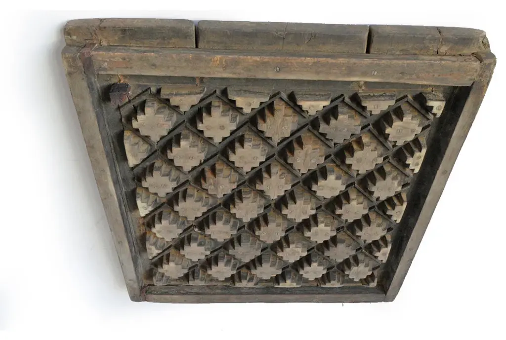 Consigned authentic early 1900''s large wood print block panel from northern India. Originally used to print textiles and hand carved with iron details. These unique pieces make beautiful art wall pieces. Ready for hanging with wire on back. This item is non-returnable - all sales are final.Condition: GreatOrigin: IndiaEra: 1900''s