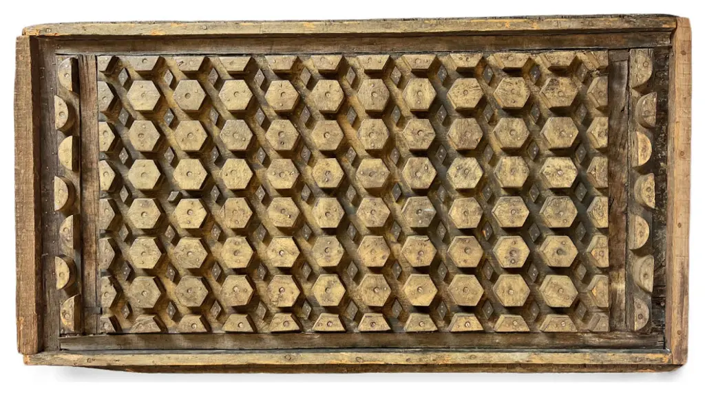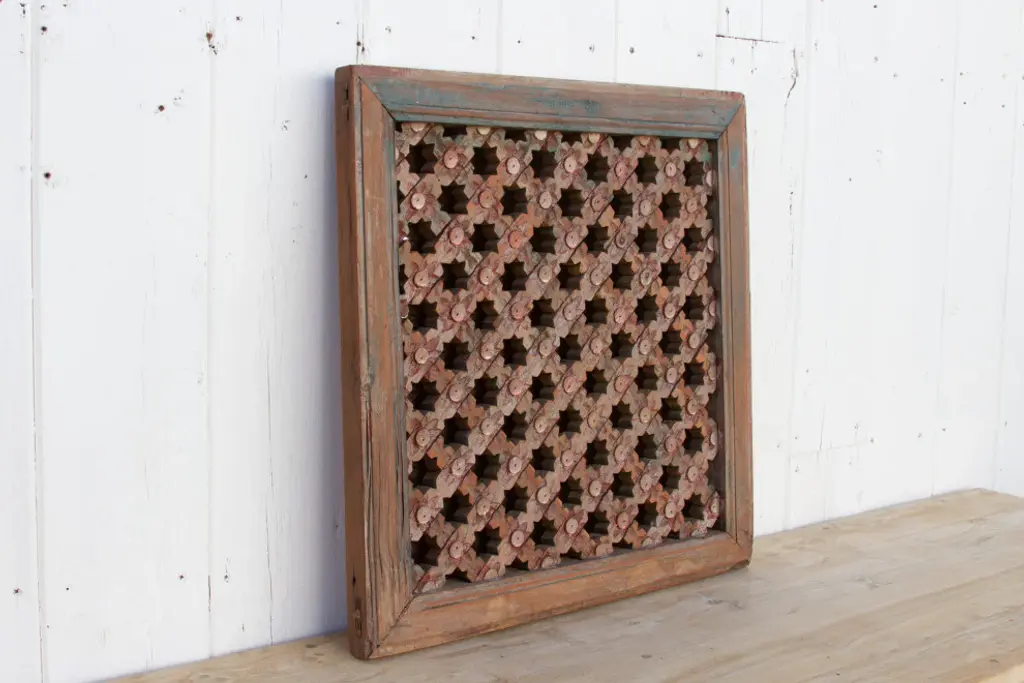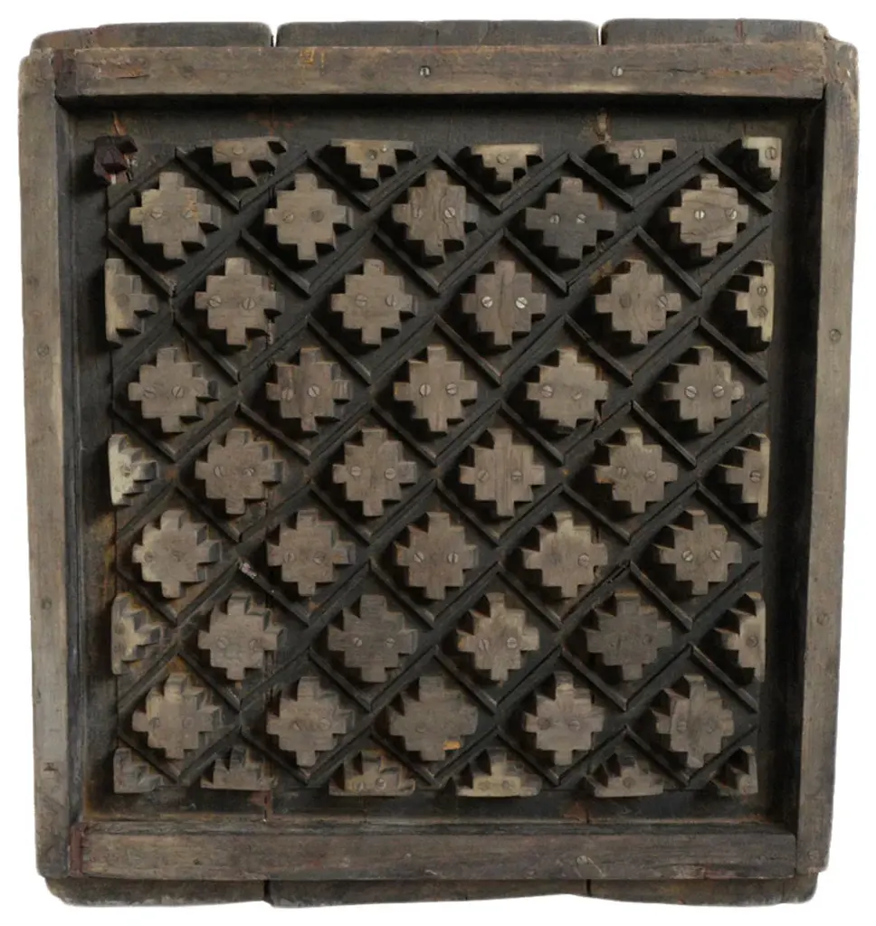 Consigned authentic early 1900''s large wood print block panel from northern India. Originally used to print textiles and hand carved with iron details. These unique pieces make beautiful art wall pieces. Ready for hanging with wire on back. This item is non-returnable - all sales are final.Condition: GreatOrigin: IndiaEra: 1900''s