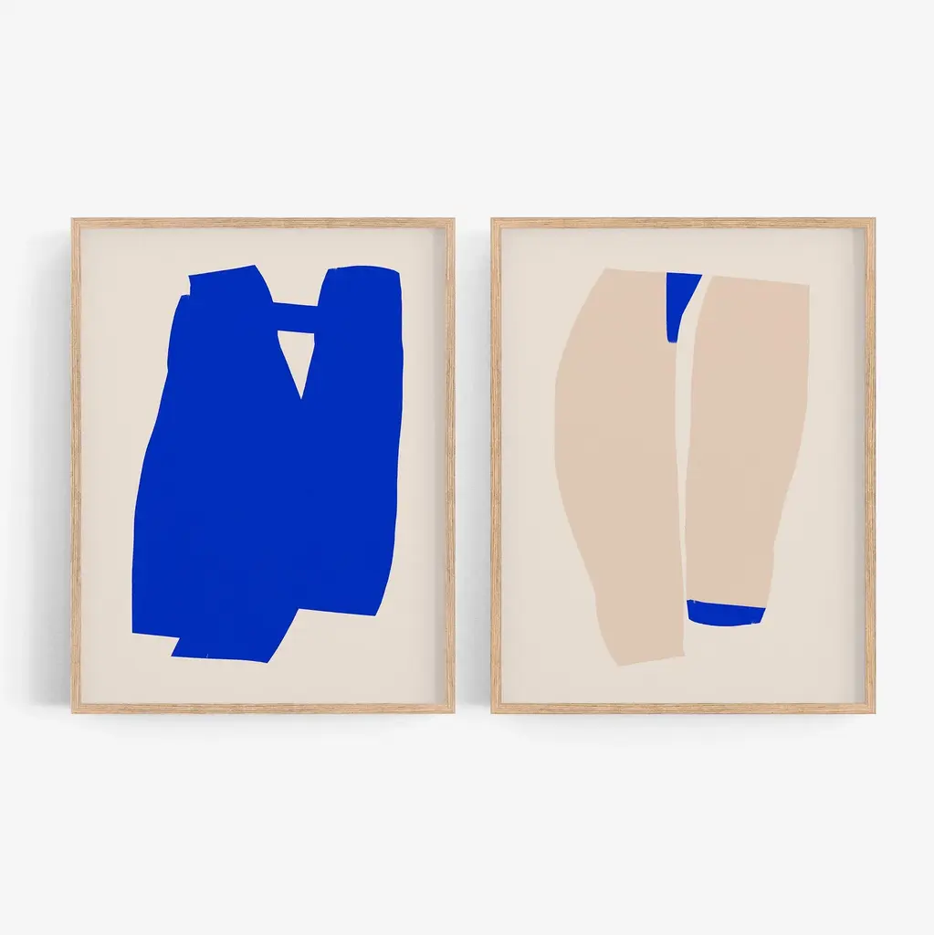 Set of 2 abstract open edition giclee prints. 20"x28" Elegant vivid blue and pink beige geometrical forms drawing in beige color. Printed on matte art paper 200gsm. Each print is 20"x28" (50x70 cm) Sold unframed, print only