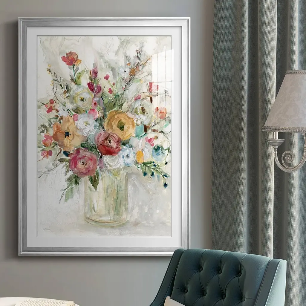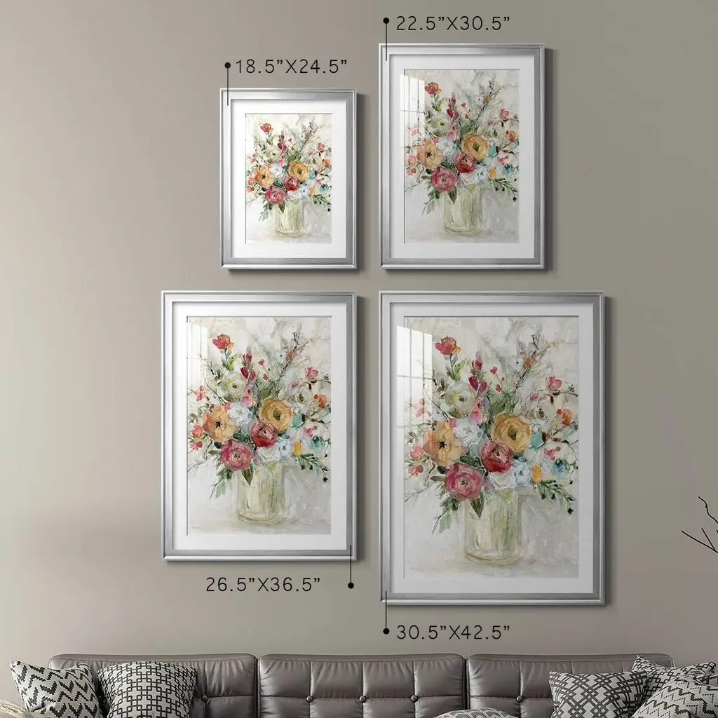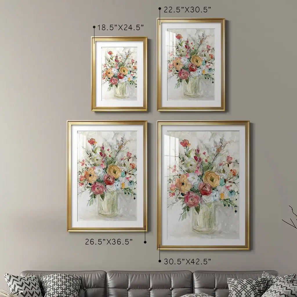 Contemporary Bouquet Premium Framed Print - Ready to Hang A Premium Framed Print created to last. Framed in distressed wood and available in an array of sizes and colors Featuring a beveled a solid wood stretcher bar, each piece comes ready to hand 4 SIZES AVAILABLE 30.5''X42.5'' - Overall Size 26.5'X36.5'' - Overall Size 22.5''x30.5'' - Overall Size 18.5''x24.5'' - Overall Size Each piece is made to order. Each piece comes with hanging hardware. Made in the USA Ready to Hang Giclee Paper Print Acrylic Glass Beveled Matt Board