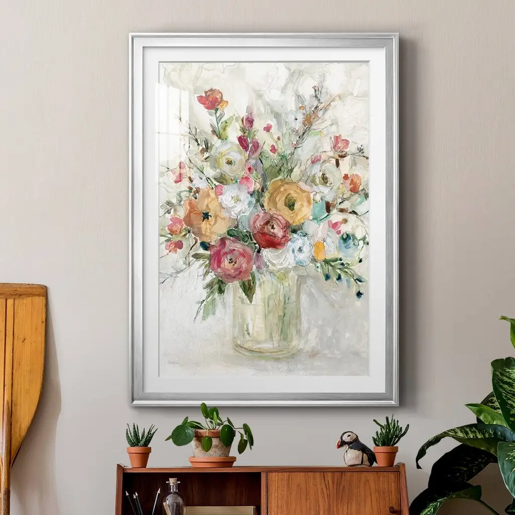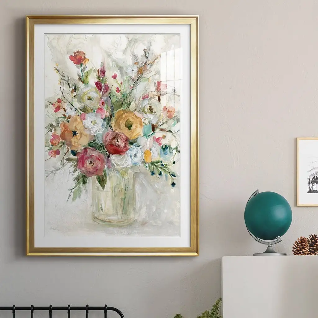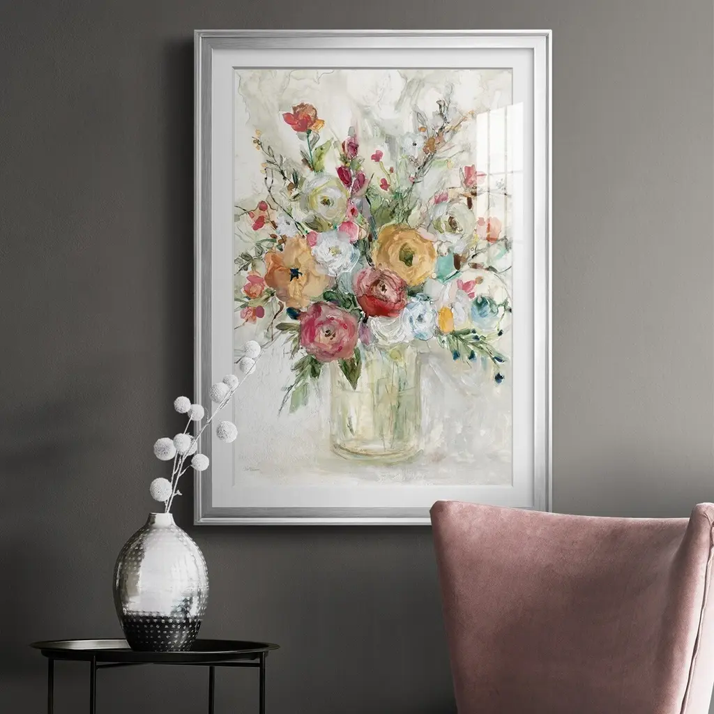 Contemporary Bouquet Premium Framed Print - Ready to Hang A Premium Framed Print created to last. Framed in distressed wood and available in an array of sizes and colors Featuring a beveled a solid wood stretcher bar, each piece comes ready to hand 4 SIZES AVAILABLE 30.5''X42.5'' - Overall Size 26.5'X36.5'' - Overall Size 22.5''x30.5'' - Overall Size 18.5''x24.5'' - Overall Size Each piece is made to order. Each piece comes with hanging hardware. Made in the USA Ready to Hang Giclee Paper Print Acrylic Glass Beveled Matt Board