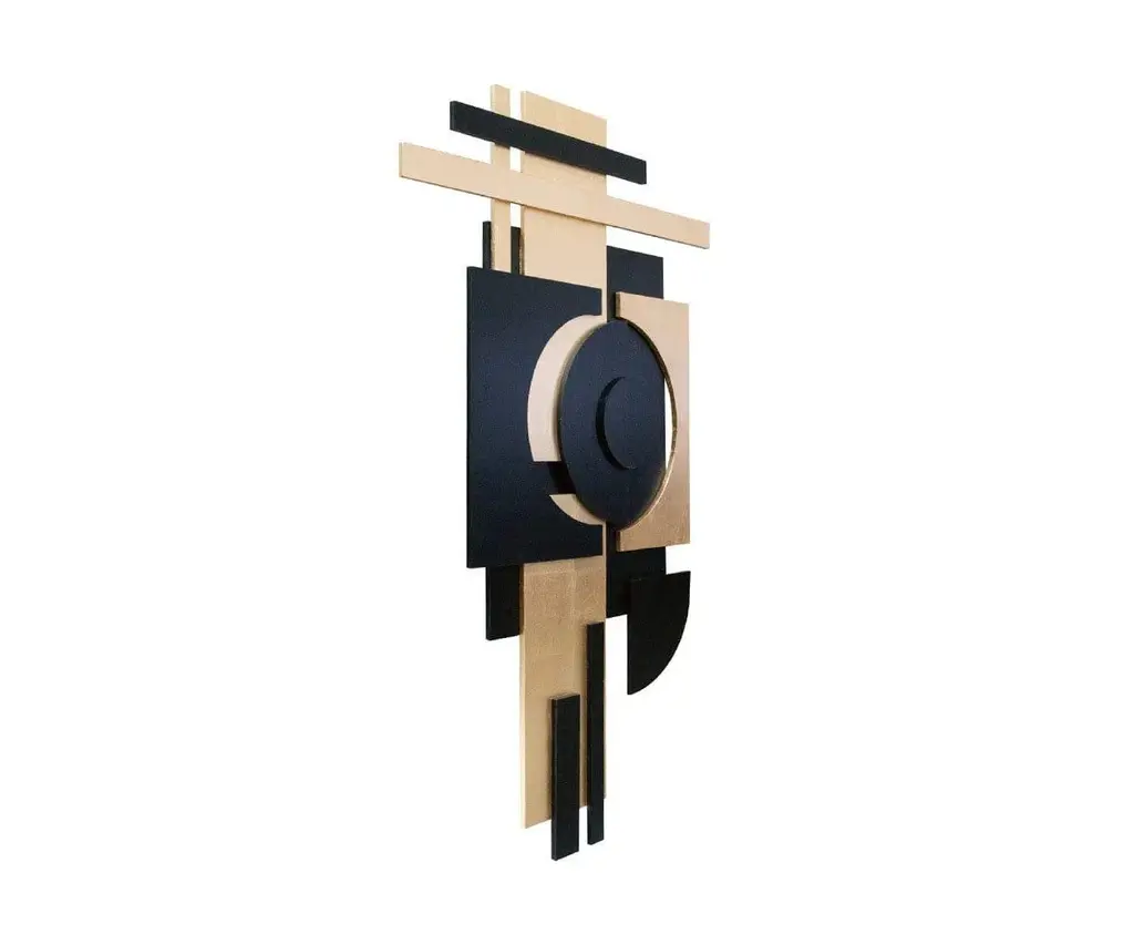 The Contemporary Concepts Wall Art is a large-scale piece that features blend of clean lines, eye-catching contemporary shapes and an artistic set of layers. Crafted from medium density fiberboard, this piece showcases dimensional texture and bold, contrasting gold and black tones, which cement it as a true statement piece. Add this sculptural piece of art to your space to anchor your bold, modern style.