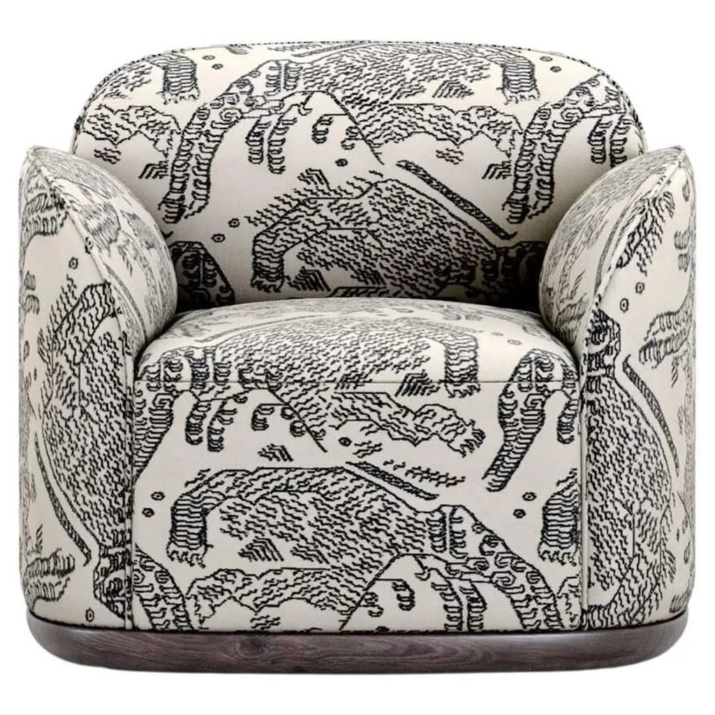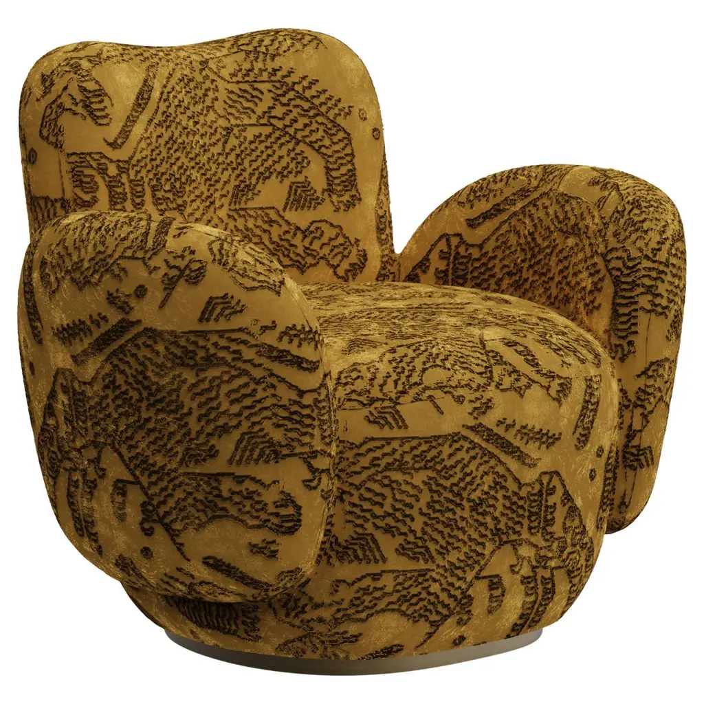 Chair HelloDesigner: Denys SokolovMaterials: wood, plywood, foam rubber, injection-molded soft foam, metal, textileFabric: Dedar, Tiger Mountain col.001Dimensions:Height: 78 cm Width: 53 cm Depth: 61 cm Seat height: 47 cm The HELLO chair transforms any space into a personalized, playful, curious setting. Beyond just furniture, it is a captivating art piece, enriching interiors with its character-rich design and visually striking presence.HELLO chair, crafted with meticulous attention to detail, boasts a visually striking and emotionally appealing design. Its round organic shapes exude playfulness yet sophistication, while the deep and comfortable seat and backrest provide unparalleled comfort and support. Designed by Denys Sokolov, the HELLO chair transcends the ordinary. It is poised to become a sought-after collector's item that adds playful accents to any space, redefining interiors with its remarkable presence.Designed by Denys Sokolov, the HELLO chair transcends the ordinary. It is poised to become a sought-after collector's item that adds playful accents to any space, redefining interiors with its remarkable presence.