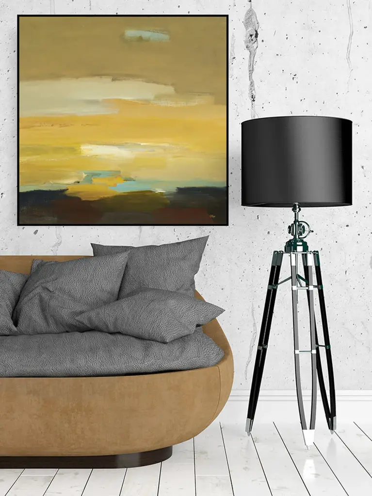 Your ready to hang artwork is printed on canvas then stretched and mounted to a 2-inch thick - hand stained black wood frame. Arrives at your door complete with an easy to use self-leveling hangking kit.