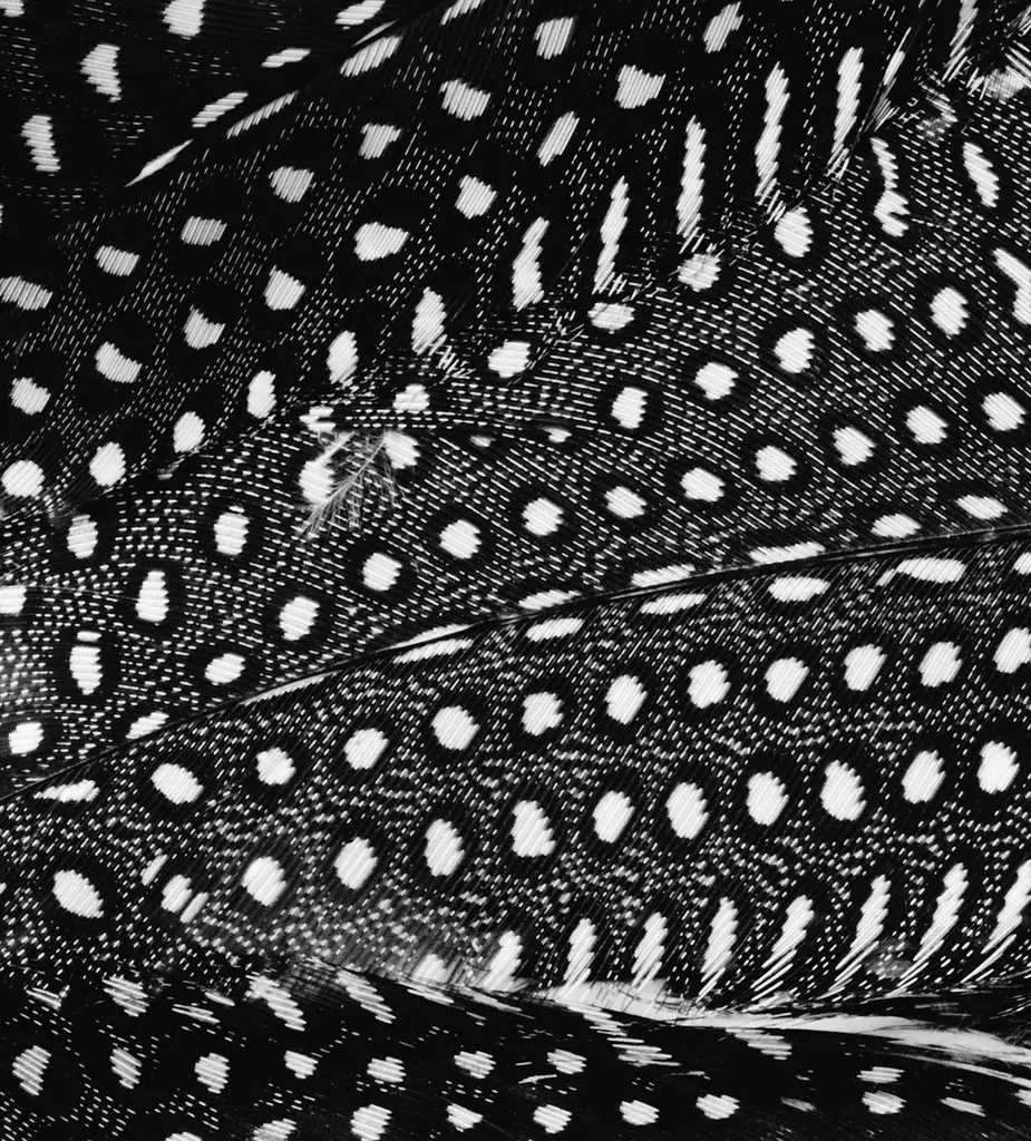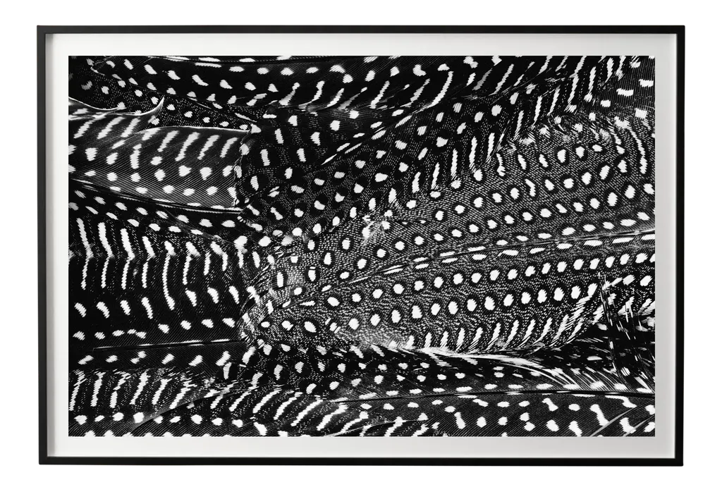 The Plumes series by DDE Studio depicts a variety of exotic feathers in dense, nearly abstract arrangements, captured in large format Black and White photographs. Unframed Black and White Photograph printed on Archival 100% cotton Somerset Velvet Fine Art Paper. Please note: A white border is included on the print unless requested otherwise.