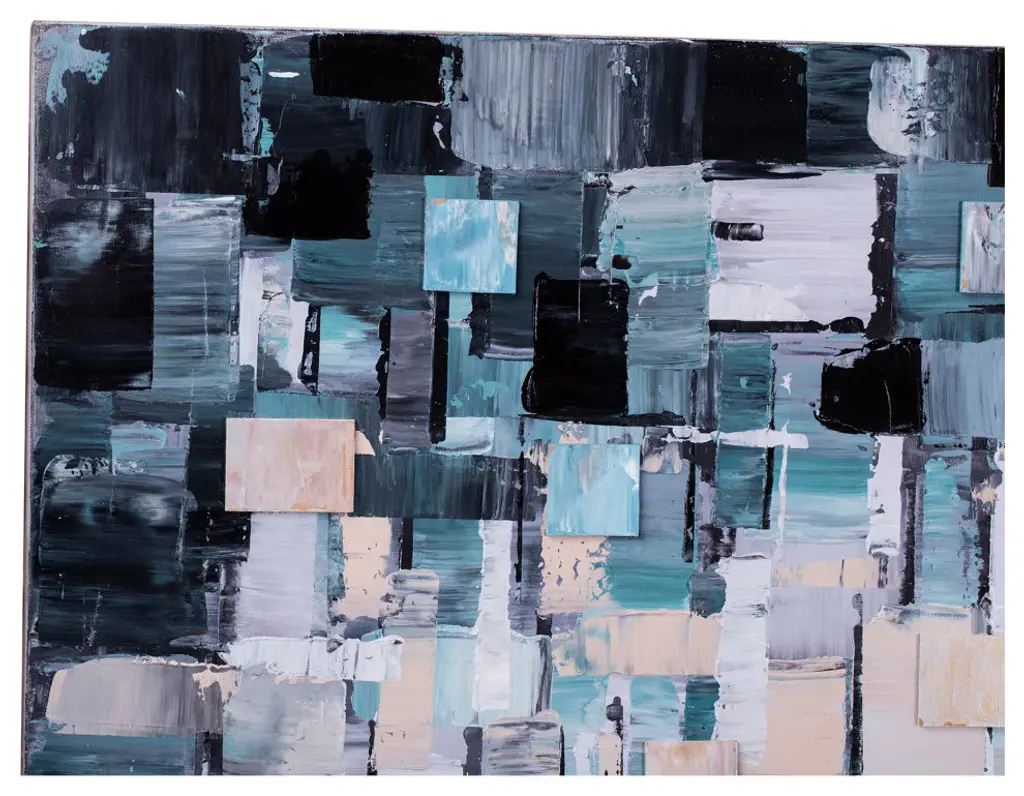 Add a contemporary flare to your walls with this large painting. Tones of blue in geometric shapes come together in this attractive hand-painted, oil on canvas, for a true work of art. Easy to hang with hooks included for an instant update to your walls. The abstract image fits seamlessly into any dcor. Acrylic on canvas for an authentic hand-painted work of art. Light weight materials for an easy to hang piece of art. Mounting hardware included for easy installation. Keep away from high temperature and direct sunlight, use vacuum regularly to remove surface dust. Made in ChinaContemporary Modern. Color: Multi . Dimension:28W 1D 55H. Product Weight:4. 00 lbs. Material: Acrylic PaintPolyethylenene CanvasWe understand how important your home is and how decorating your kitchen, dining room or bedrooms with classy, contemporary furnishings can help make it a place that reflects who you are. We believe in the power modern furniture has in creating not just a home but YOUR home. We believe in feeling good about our home''s environment, and we think you do too.High quality acrylic paint on canvasLightweightColor: MulticolorMaterial : Acrylic Paint ; Polyethylene Canvas