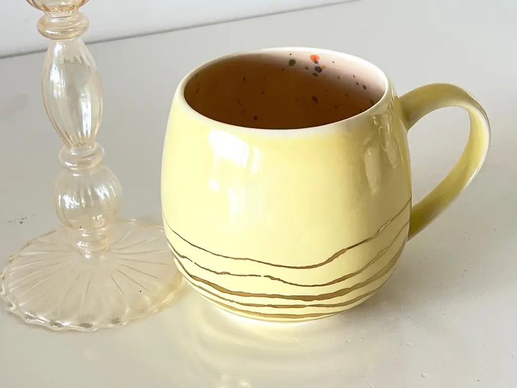 Contemporary Set Of 2 Chubby Mugs Hand Painted Porcelain Yellow Chestnut Gold