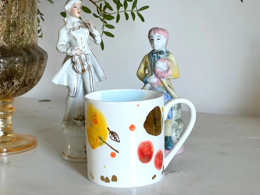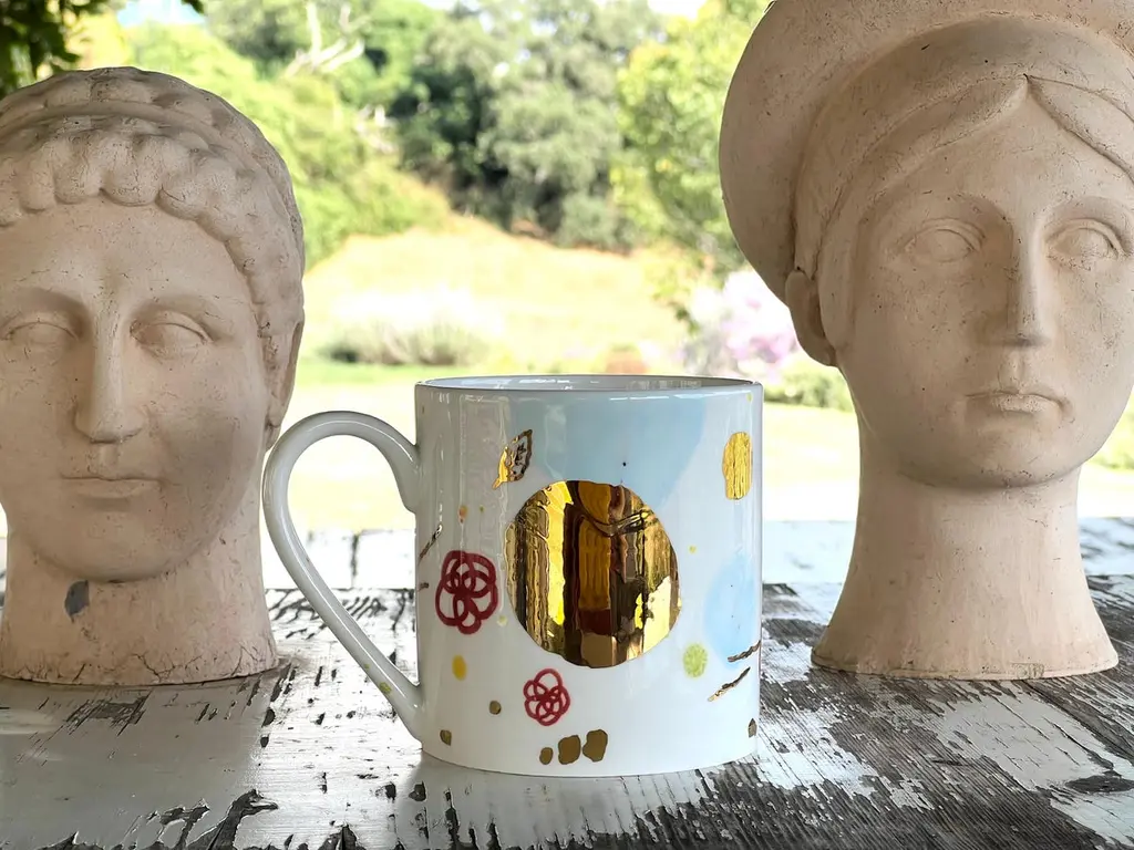 Contemporary Set Of 2 Large Mugs Hand Painted Porcelain Multicolor Gold