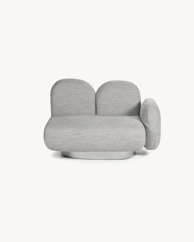 Modular Sofa Assemble 1-seat-sofa with 1 armrest rightDesigned by Destroyers/Builders x Valerie ObjectsUpholstery: gijon sandCode: V9020323Dimensions: L 87 W 123 H 85CM (SH 40 cm)Materials: Wood, aluminium and upholsteryThe ASSEMBLE sofa encourages exactly what its name suggests: to assemble your own sofa. For Linde Freya Tangelder, the founder of destroyers/builders, the ASSEMBLE is a sofa debut. 'It was the most complex object I have ever designed. And the largest for that matter. It was challenging to combine my preference for architectural contouring and very tactile materials with rather practical necessities as sitting comfort, foam density and extreme detailing.' This sofa was developed to be neither too firm, nor very soft. Form-wise the assemble was inspired by weathered pebble stones, by ground glass or the remains of a washed little soap.destroyers/builders is the Brussels based design studio founded by Linde Freya Tangelder in 2015. As the name suggests, Linde Freya destroys design to rebuild her own visual language. By zooming in on basic architectural shapes and materials, and translating them into minimalist designs, she gives overlooked objects the attention they deserve. The result of that research can be a unique object close to artwork, a limited series of designs or an industrial product. Whatever the material and the functionality of the piece demand. Linde Freya Tangelder is one of the founders of Belgium’s highly appraised Brut collective. Early 2019 Brut received the Henry van de Velde Award for Young Talent, the most prestigious Belgian design prize. Since 2019 destroyers/builders has also been a part of the FAR collection. Far is a project by Studio Vedèt, commissioned by the renowned Nilufar Gallery and Depot in Milan.